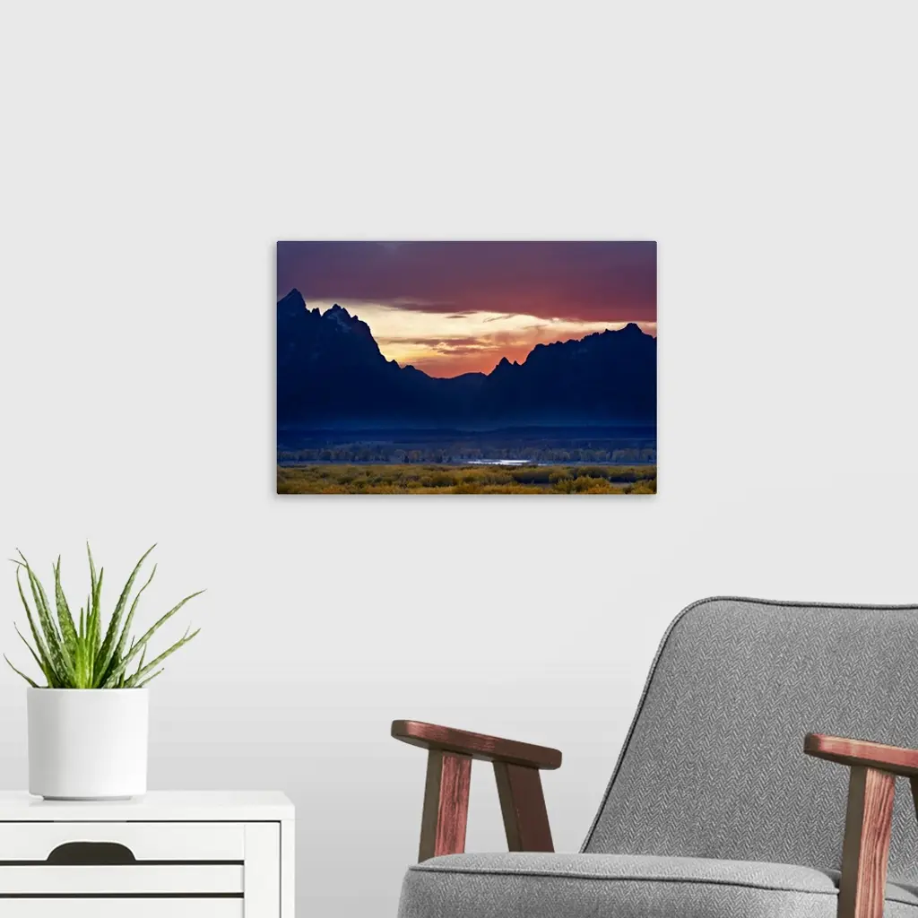 Grand Tetons at Sunset, Jackson Hole, Wyoming wall art for home and office decor. Discover canvas art prints, photos, mural, big canvas art and framed wall art in GreatBigCanvas.com's varied collections.