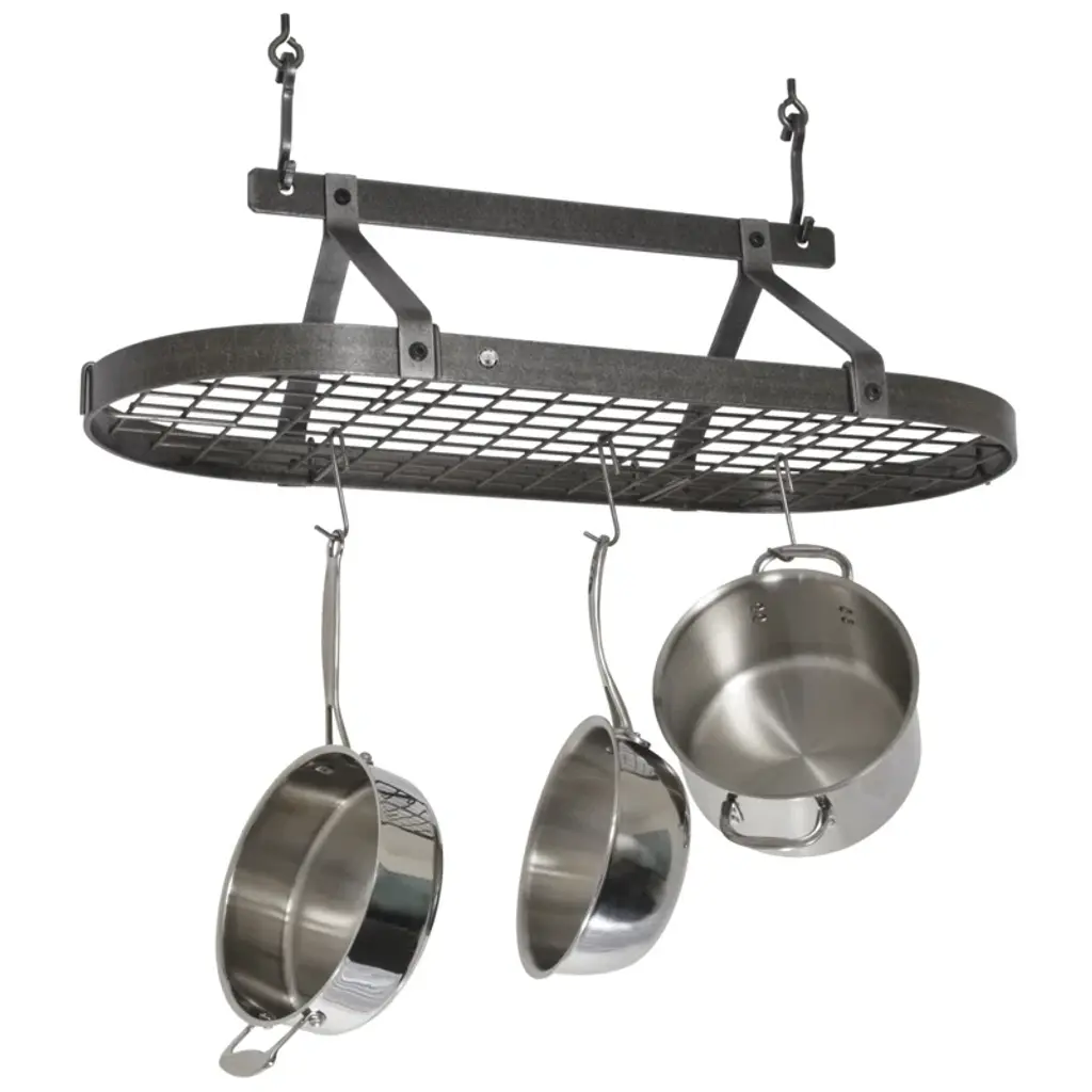 Grande Cuisine Oval Ceiling Rack W 20 Hooks Hammered Steel