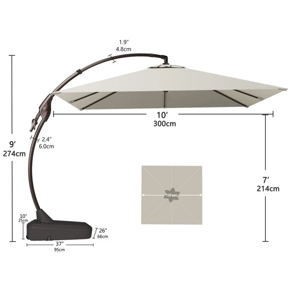Grandpatio 10x10 Ft Square Cantilever Curved Adjustable Umbrella With Base