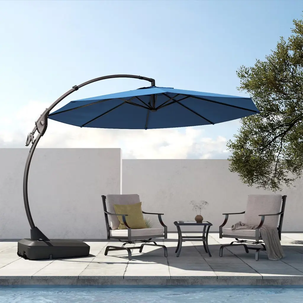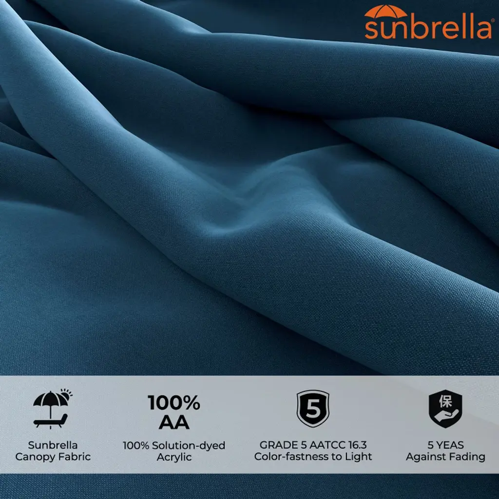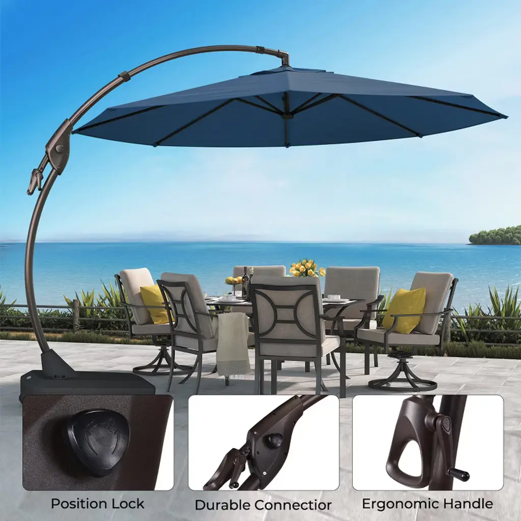 This uniquely designed large outdoor umbrella features a crank handle for easy opening and closing, making it perfect for outdoor use. Compliant with U.S. quality and test standards, more sturdy and durable The powder-coated aluminum frame resists rust and includes eight heavy-duty ribs for enhanced stability. The canopy is made from industry-leading Sunbrella fabric, which weighs just 270 grams and offers superior SPF protection to prevent sunburn. The fabric is also fade-resistant, water-resistant, and stain-resistant for long-lasting durability. The base is equipped with an adjustable leveler for excellent stability and safety. For optimal stability, the base should be filled with 265 pounds of sand and water. This umbrella provides ample shade and style for your porch, patio, or garden, creating a cool and comfortable outdoor living space. Whether you’re hosting a backyard barbecue, enjoying a peaceful afternoon on the porch, or relaxing by the pool, this umbrella offers an exceptional outdoor experience for you and your guests.