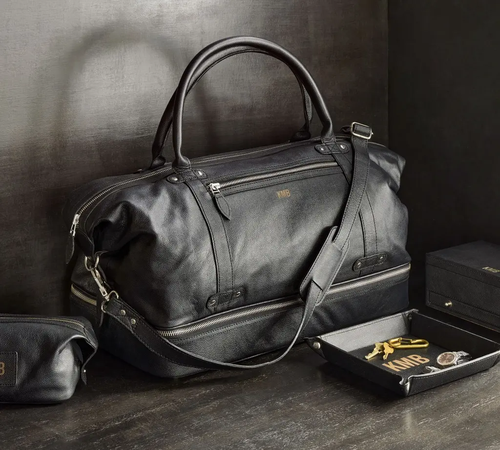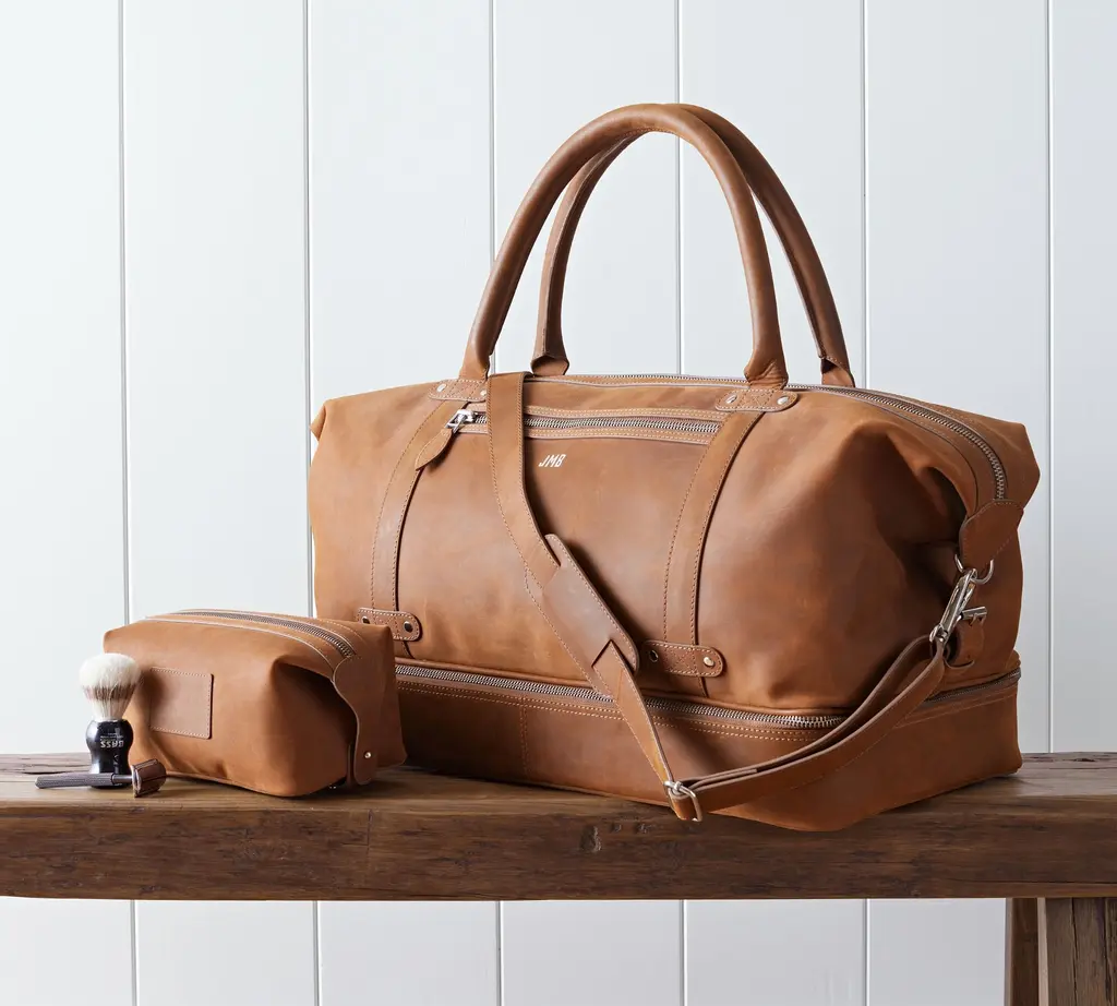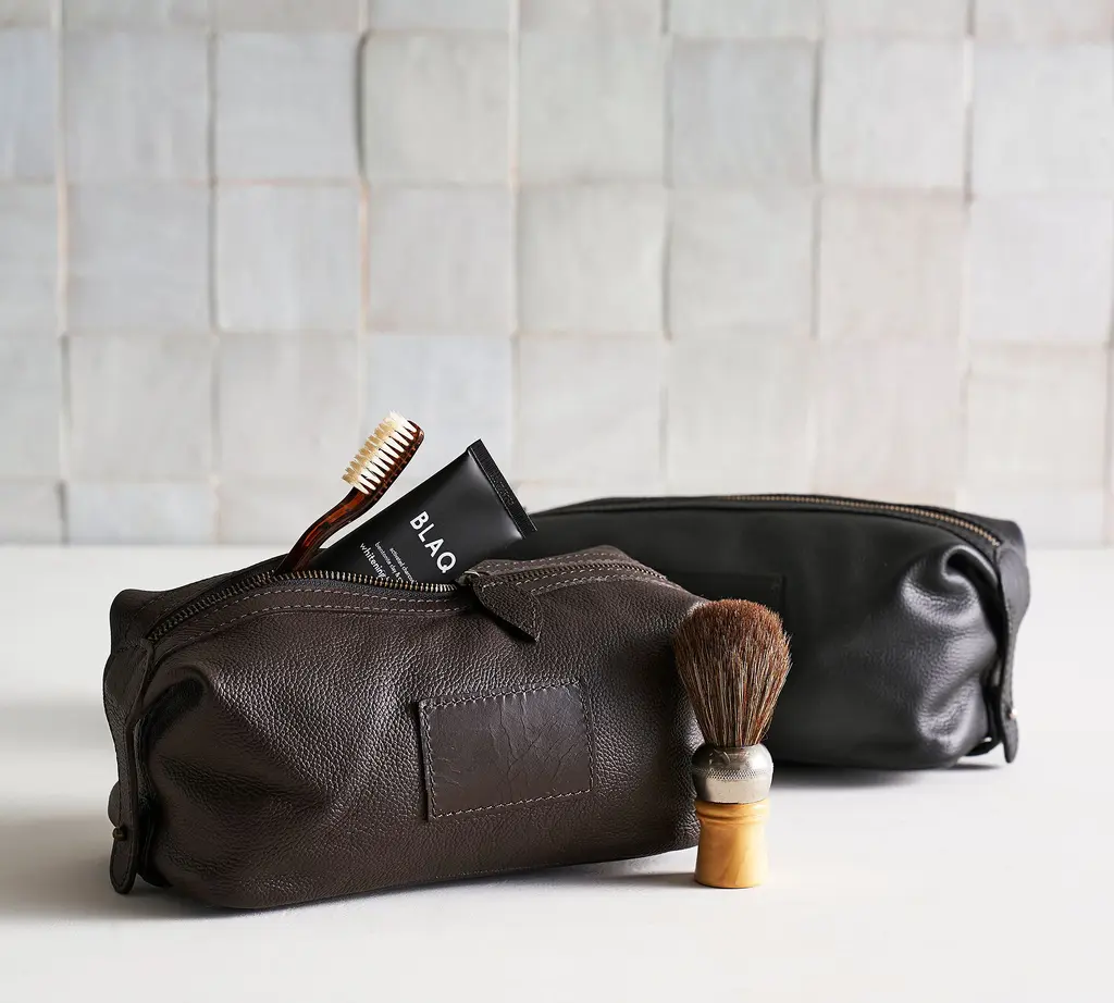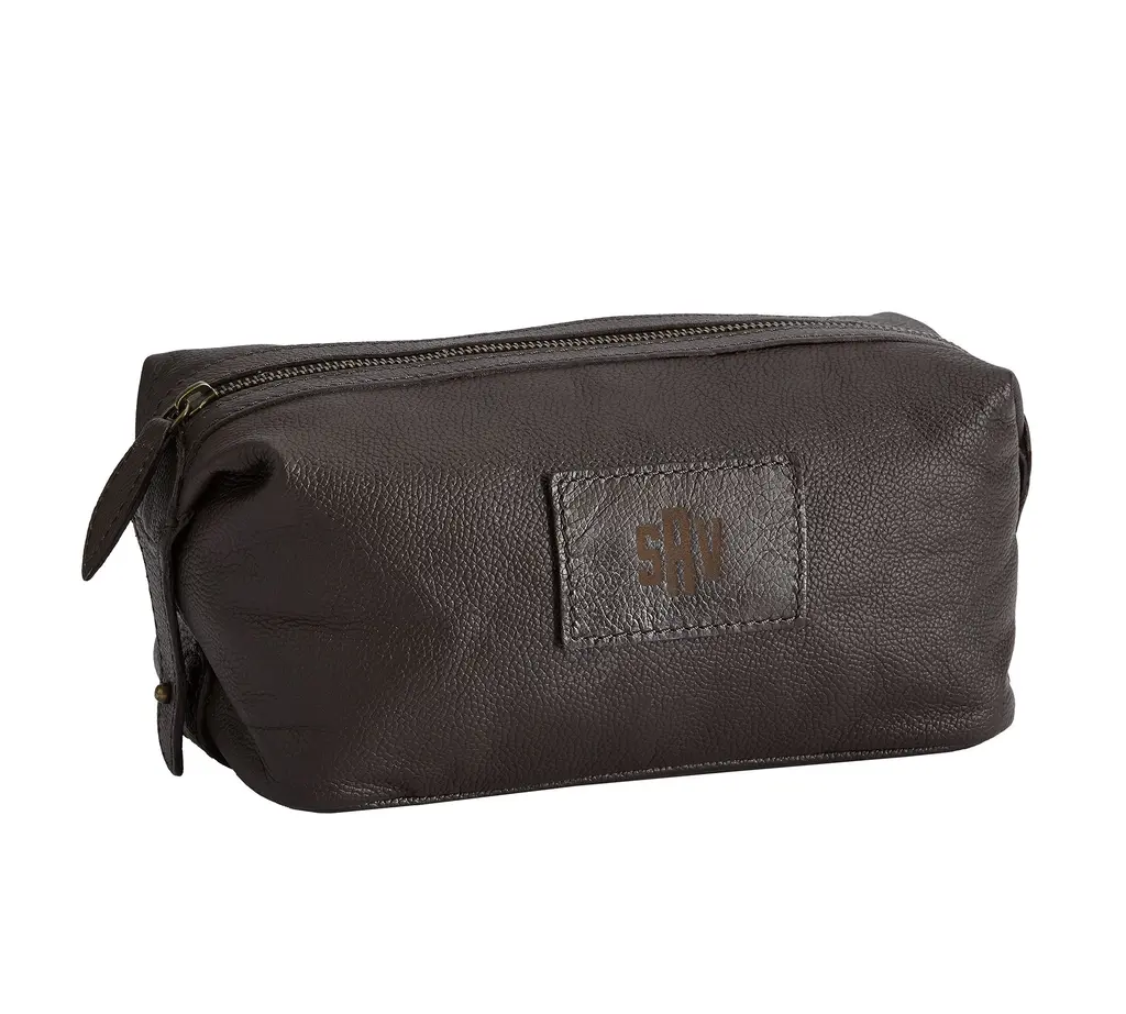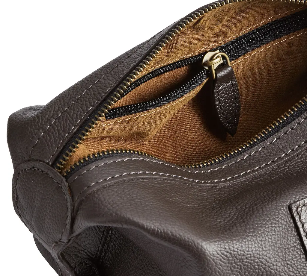 The Grant Collection was inspired by timeless silhouettes and details, meant to be an heirloom passed down through generations. The toiletry case, with its pebbled leather and matching stitching, is a handsome addition to any luggage collection. Add a monogram for a personal touch.