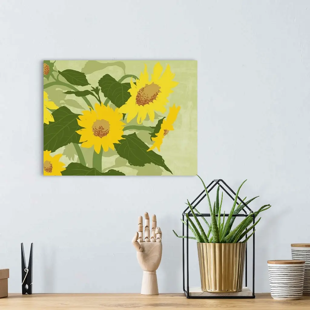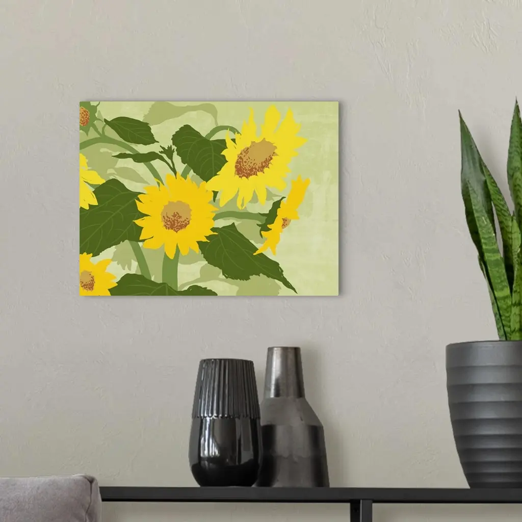 graphic handed painted style illustration of sunflowers wall art for home and office decor. Discover canvas art prints, photos, mural, big canvas art and framed wall art in GreatBigCanvas.com's varied collections.