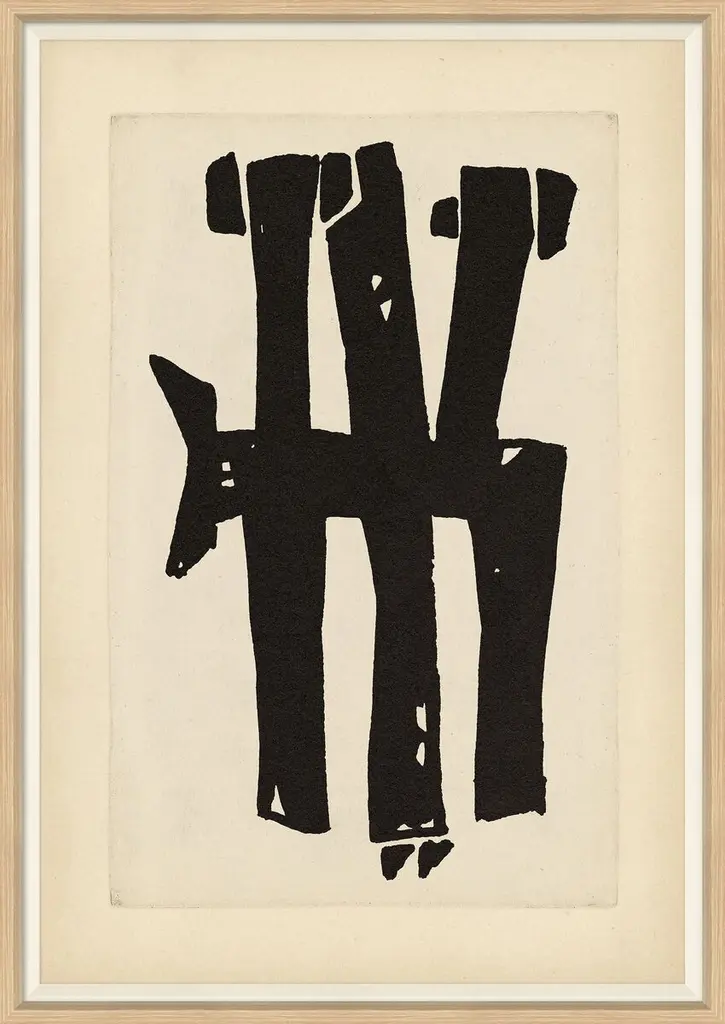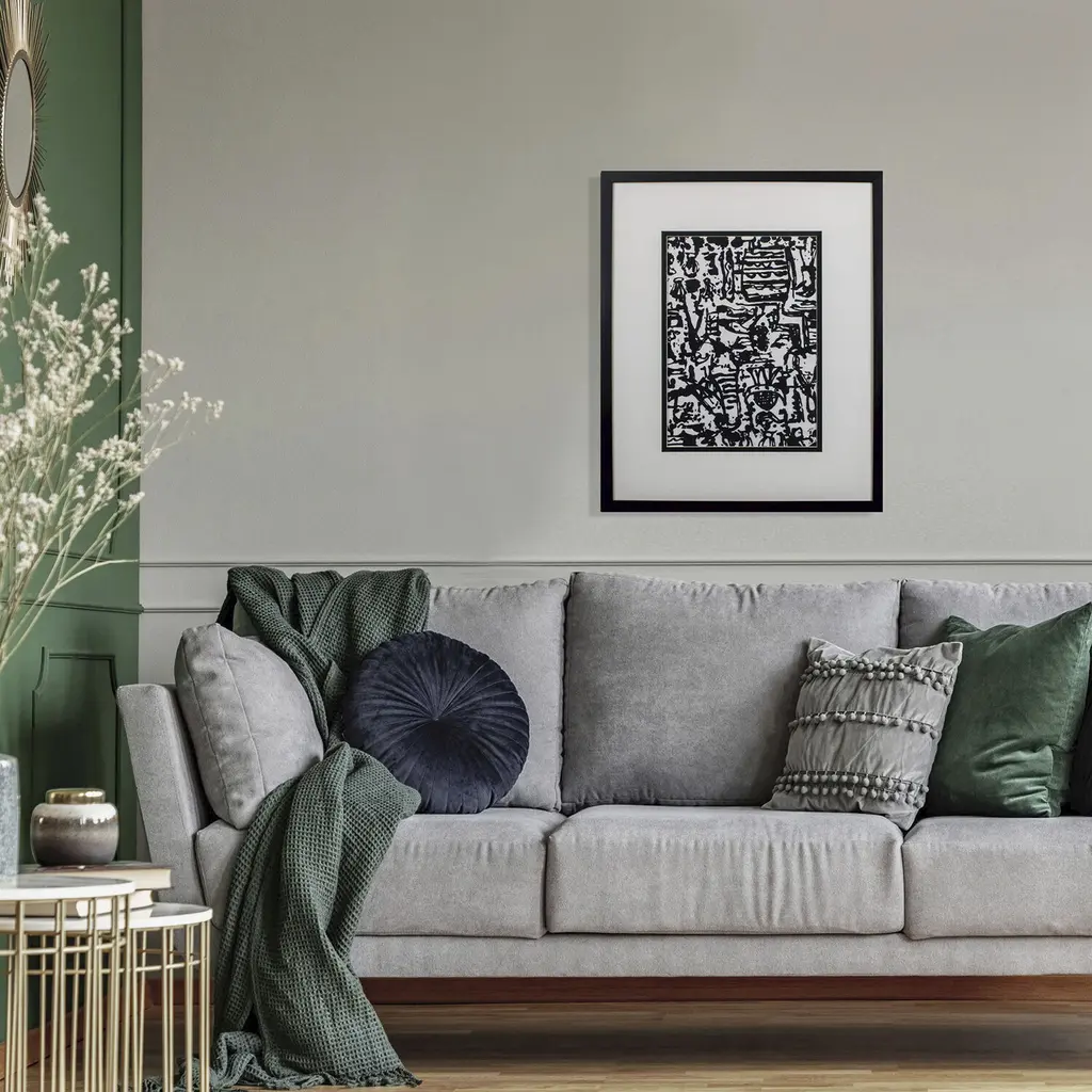A tribal inspired image that has been double matted and framed under glass in a sleek black moulding.