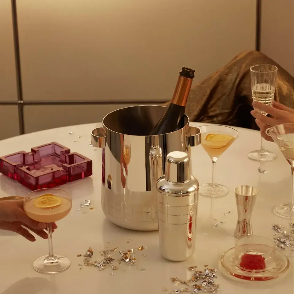 This champagne cooler presents the emblematic Graphik pattern positioned at the base of the piece highlighted by the exceptional mirror polish, signature of Christofle know-how. The rounded handles facilitate the handling of the bucket while respecting its line. The conductivity of the silver plated is ideal for presenting and keeping the champagne cool for a longer time. Christofle expands its GRAPHIK collection launched in 2015, from crystal to silver plated. The resolutely modern and elegant design of this collection is inspired by crystal cut according to the traditional pattern made by glassmakers. The GRAPHIK collection is evolving to offer a full range focused on barware and the preparation of cocktails. The art of cocktail makes a comeback. Reduced to its simplest expression since the 80s, it is now one of the most popular drinks of the moment. Cocktails are on every tables: colorful and tasty, they have established themselves as the trendy drink of the moment. Our newest creations are made of silver plated, respecting Christofle’s codes and values. The GRAPHIK pattern in its modern and emblematic size is part of a different rhythm from one piece to another. Our barware offer stands out for its creativity, elegance and functionality. All the collection is made in France. Thanks to its creations in silver, Christofle is a symbol of luxury and elegance. Since its founding in the mid-19th century, it has been a continous innovative force and has infused each era with a new art of living. Thus, over time, this prestigious company has revolutionized styles, techniques, and methods for the production and distribution of silver plate and the decorative arts. A player in and privileged witness to the evolution of taste, customs, and traditions, Christofle has always seen its name associated with major creative trends, renowned artists such as Man Ray or Jean Cocteau, avant-garde architects such as Gio Ponti, and modernist silversmiths such as Lino Sabattini and Christian Fjerdingsatd, as well as present-day designers such as Andrée Putman, Martin Szekely or Ora ïto. Today, as in the past, whether gracing the tables of emperors, princes, or maharajas, in palaces, on board the Trans-Siberian Railway, Orient Express, or transatlantic ocean liners, or in the contemporary restaurants, Christofle continues to make an impression.