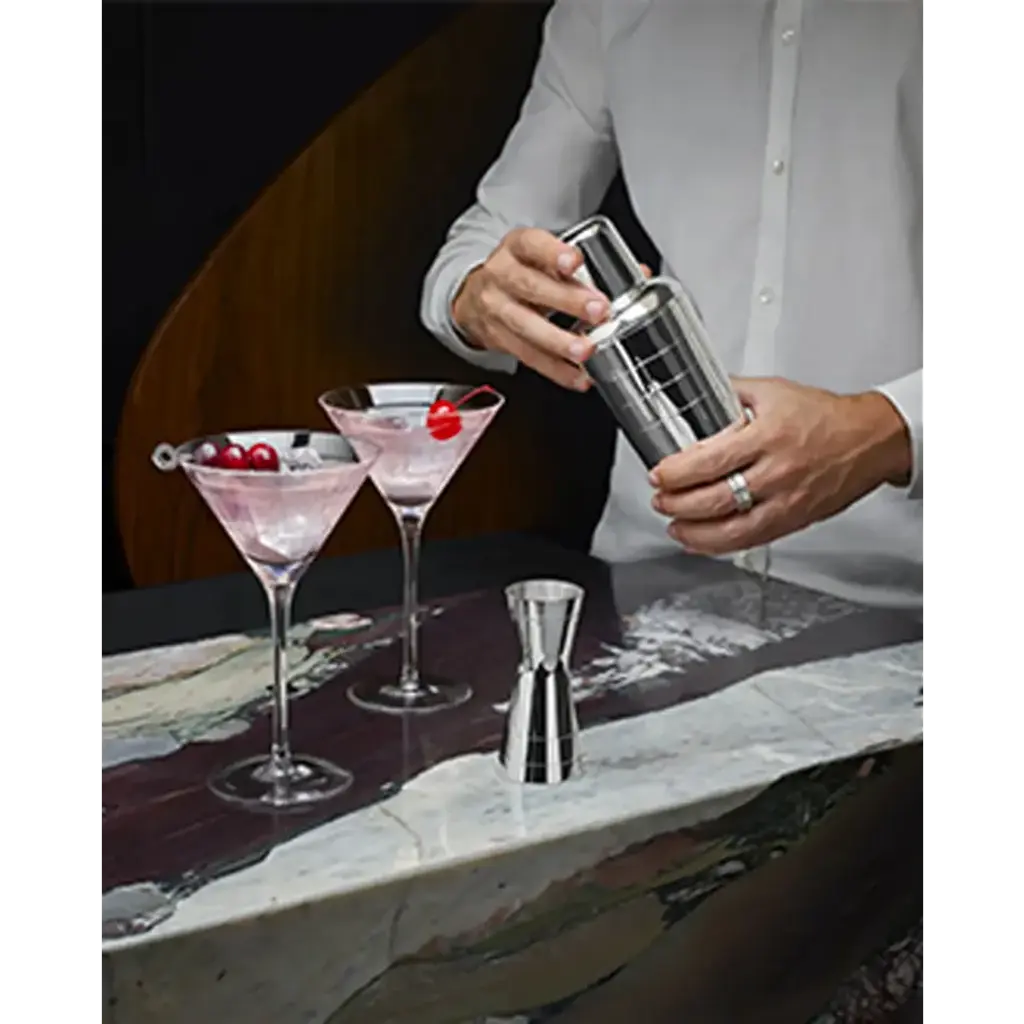 The jigger is one of the essential bar utensils. 2/4cl dual batcher allowing to precisely measure the quantity of liquid for a quality dosage necessary for the preparation of your cocktails and other drinks. The thinnest part at the intersection of the jigger is a point of grip allowing a better grip for a design that is both aesthetic and ergonomic. Christofle expands its GRAPHIK collection launched in 2015, from crystal to silver plated. The resolutely modern and elegant design of this collection is inspired by crystal cut according to the traditional pattern made by glassmakers. The GRAPHIK collection is evolving to offer a full range focused on barware and the preparation of cocktails. The art of cocktail makes a comeback. Reduced to its simplest expression since the 80s, it is now one of the most popular drinks of the moment. Cocktails are on every tables: colorful and tasty, they have established themselves as the trendy drink of the moment. Our newest creations are made of silver plated, respecting Christofle’s codes and values. The GRAPHIK pattern in its modern and emblematic size is part of a different rhythm from one piece to another. Our barware offer stands out for its creativity, elegance and functionality. All the collection is made in France. Thanks to its creations in silver, Christofle is a symbol of luxury and elegance. Since its founding in the mid-19th century, it has been a continous innovative force and has infused each era with a new art of living. Thus, over time, this prestigious company has revolutionized styles, techniques, and methods for the production and distribution of silver plate and the decorative arts. A player in and privileged witness to the evolution of taste, customs, and traditions, Christofle has always seen its name associated with major creative trends, renowned artists such as Man Ray or Jean Cocteau, avant-garde architects such as Gio Ponti, and modernist silversmiths such as Lino Sabattini and Christian Fjerdingsatd, as well as present-day designers such as Andrée Putman, Martin Szekely or Ora ïto. Today, as in the past, whether gracing the tables of emperors, princes, or maharajas, in palaces, on board the Trans-Siberian Railway, Orient Express, or transatlantic ocean liners, or in the contemporary restaurants, Christofle continues to make an impression.