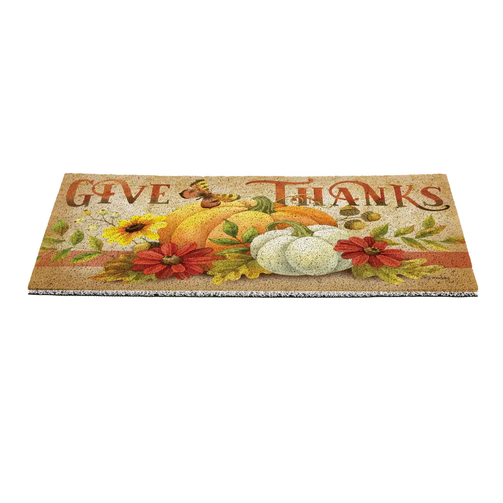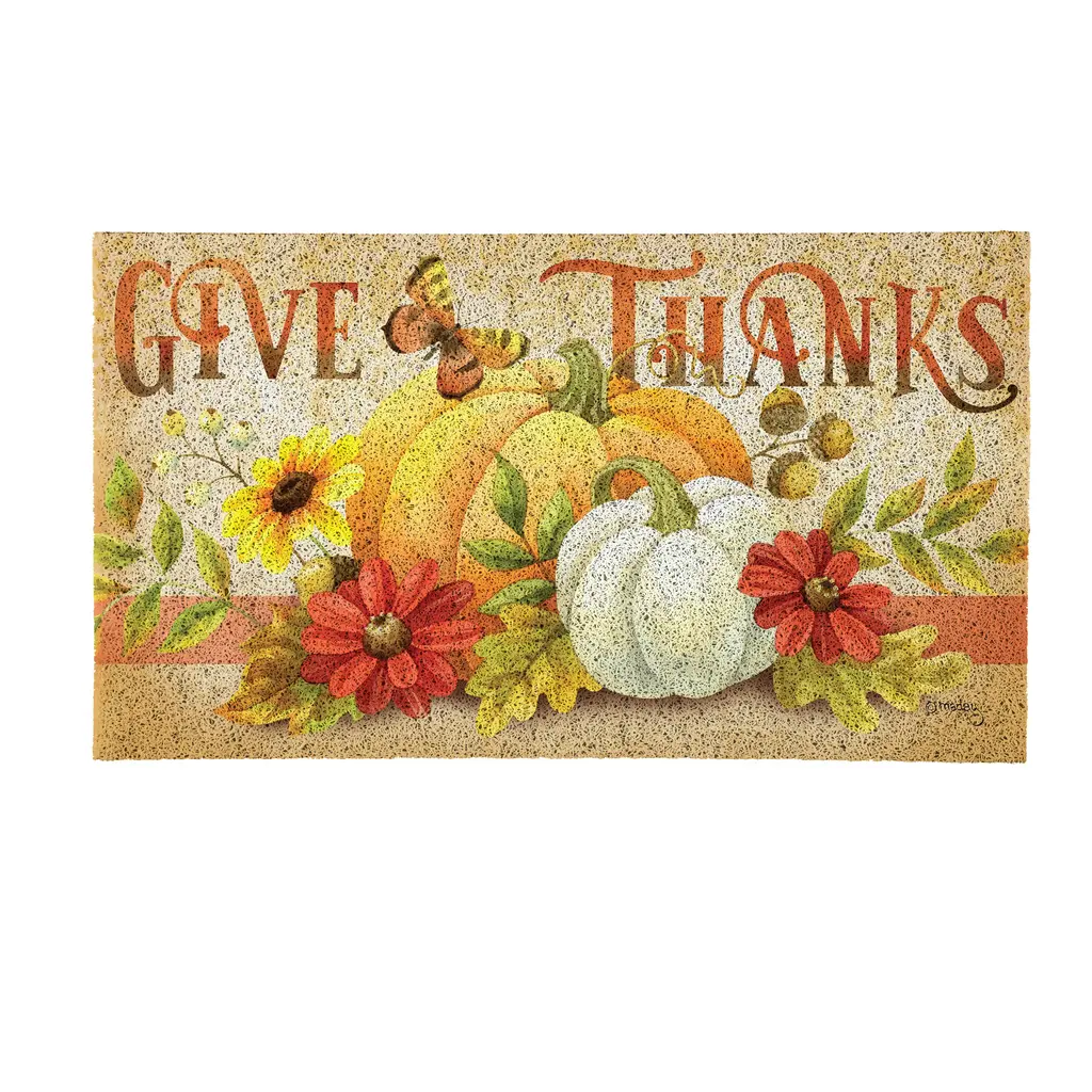 Grateful Gatherings Pvc Trapper Mat, "Give Thanks" 28"x16"