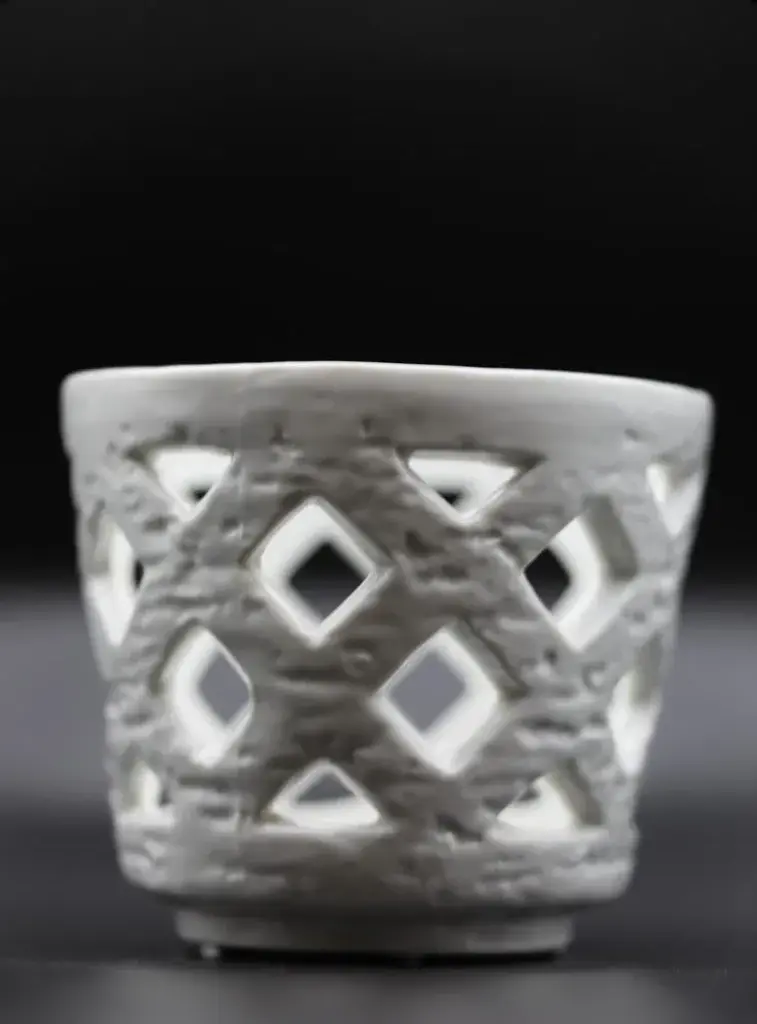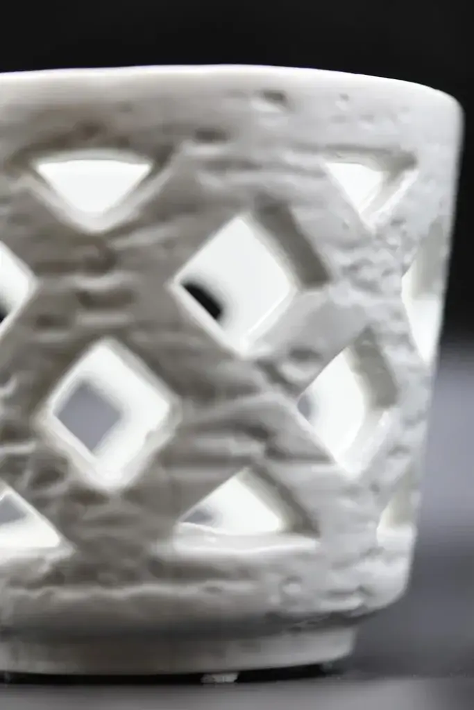 Classic and much-loved lattice pots/outer pots made of chamotte. Designed by Gunnar Nylund for Rörstrand in Sweden. Stylish model that is, for example, excellent for orchids and hyacinths that want light on the roots and a little water and also as candle lanterns! Deep stamped and in very fine condition. 11.5 cm hög samt 13 cm ø. This piece has an attribution mark, I am sure that it is completely authentic and take full responsibility for any authenticity issues arising from misattribution