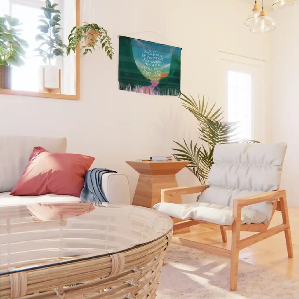 Crafted with polyester yarnIncludes wooden dowel and cotton yarn for hangingHand wash when needed with damp clothEvery order is made just for youSHIPPING: Items are made to order and typically ship within 3-4 business days. Click here for more information about delivery options.RETURNS: Return requests can be made within 30 days of your item(s) delivery. Click here for more information on returns.