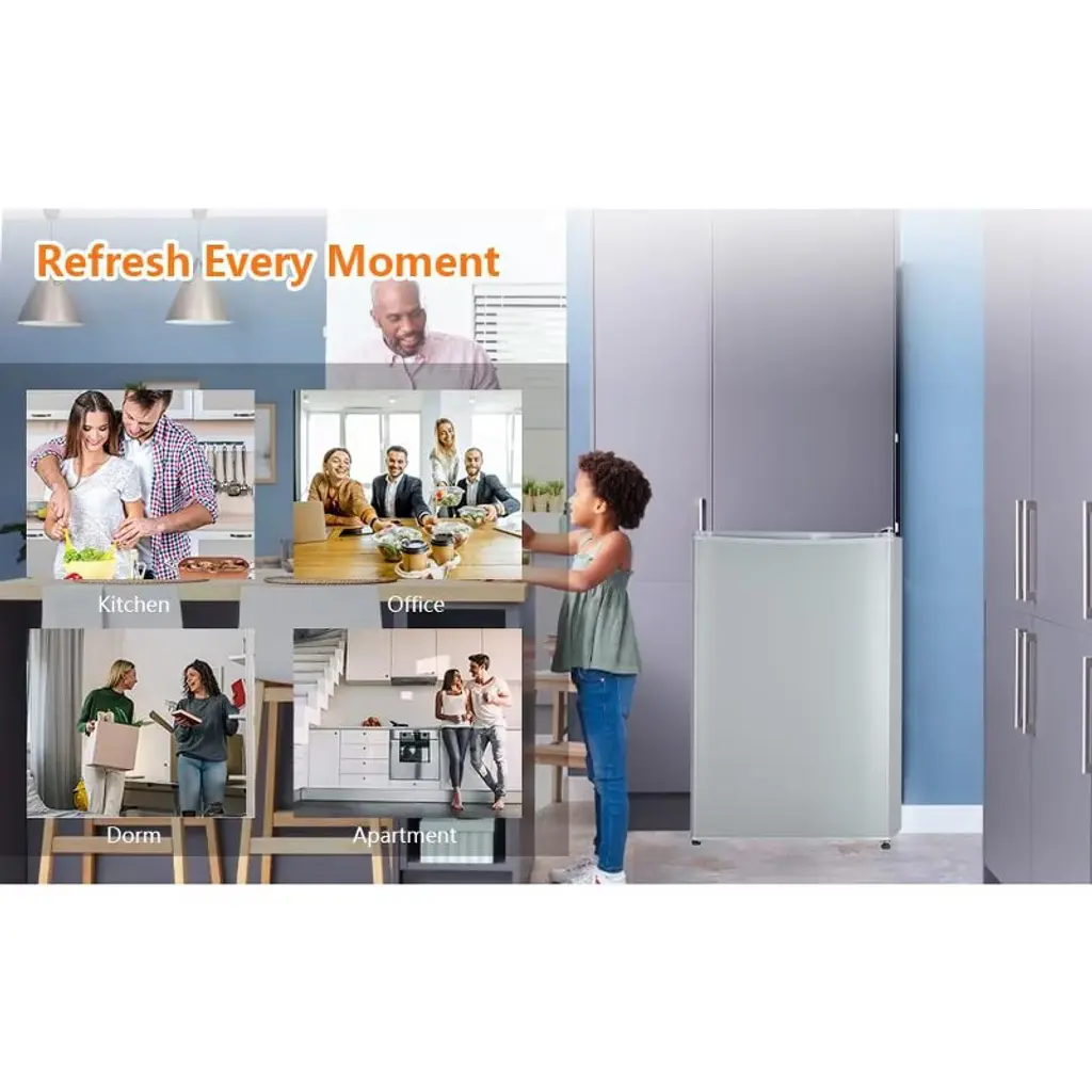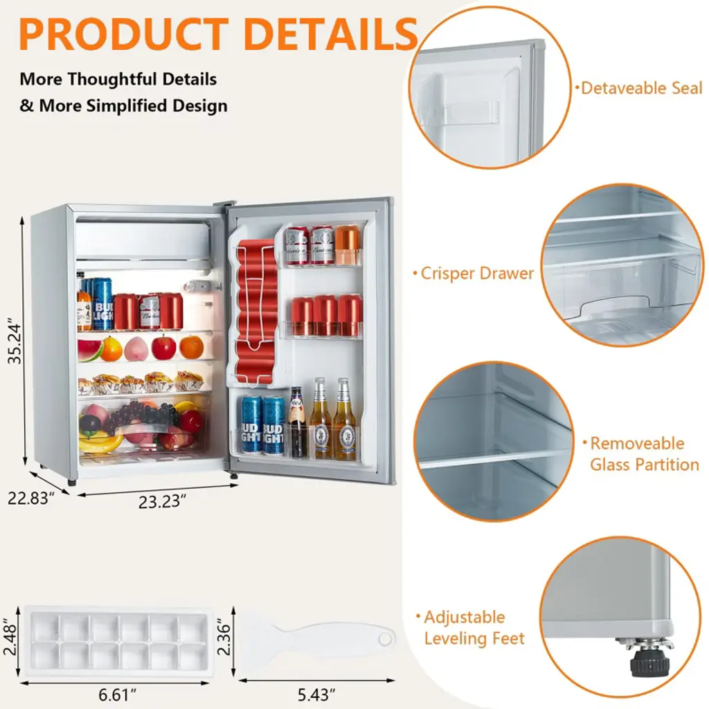Gray 4.4 Cu. Ft Mini Fridge With Freezer - Adjustable Glass Shelves, Crisper Drawer, Single Door Design, Ideal For Dorms, Offices, And Small Spaces