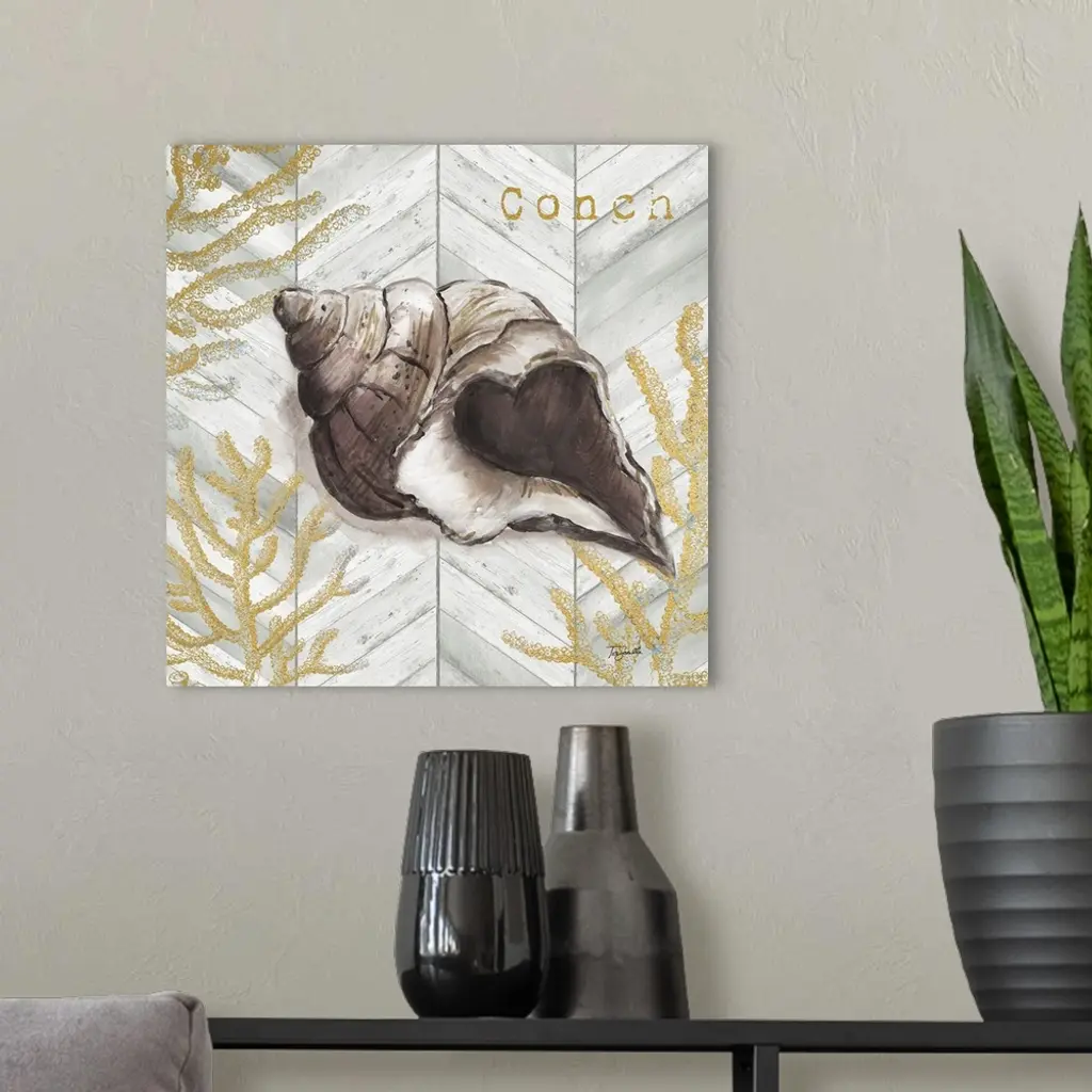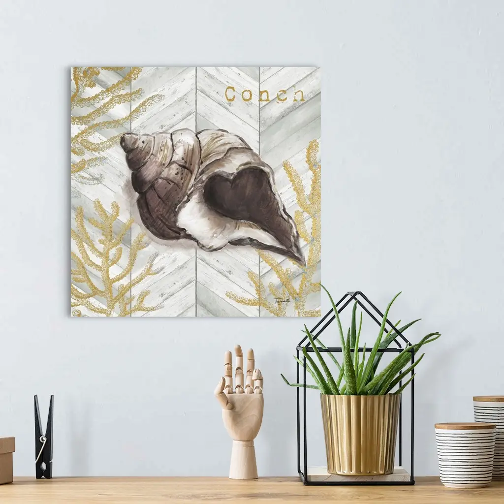 Gray Gold Chevron Conch Shell wall art for home and office decor. Discover canvas art prints, photos, mural, big canvas art and framed wall art in GreatBigCanvas.com's varied collections.