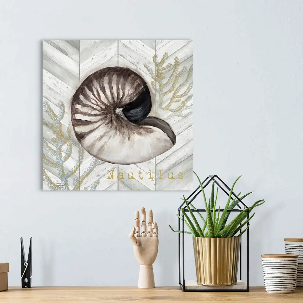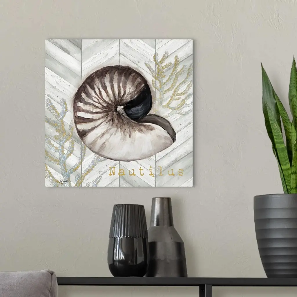 Gray Gold Chevron Nautilus Shell wall art for home and office decor. Discover canvas art prints, photos, mural, big canvas art and framed wall art in GreatBigCanvas.com's varied collections.