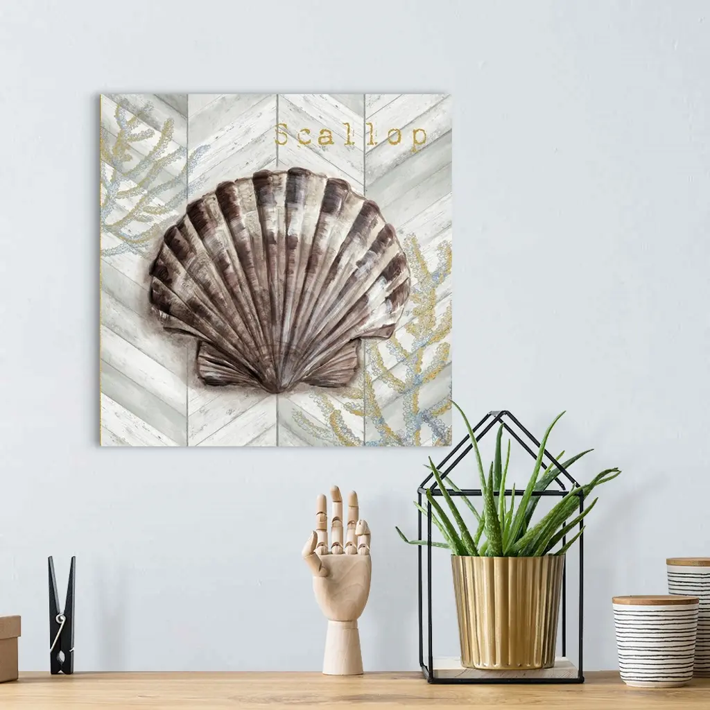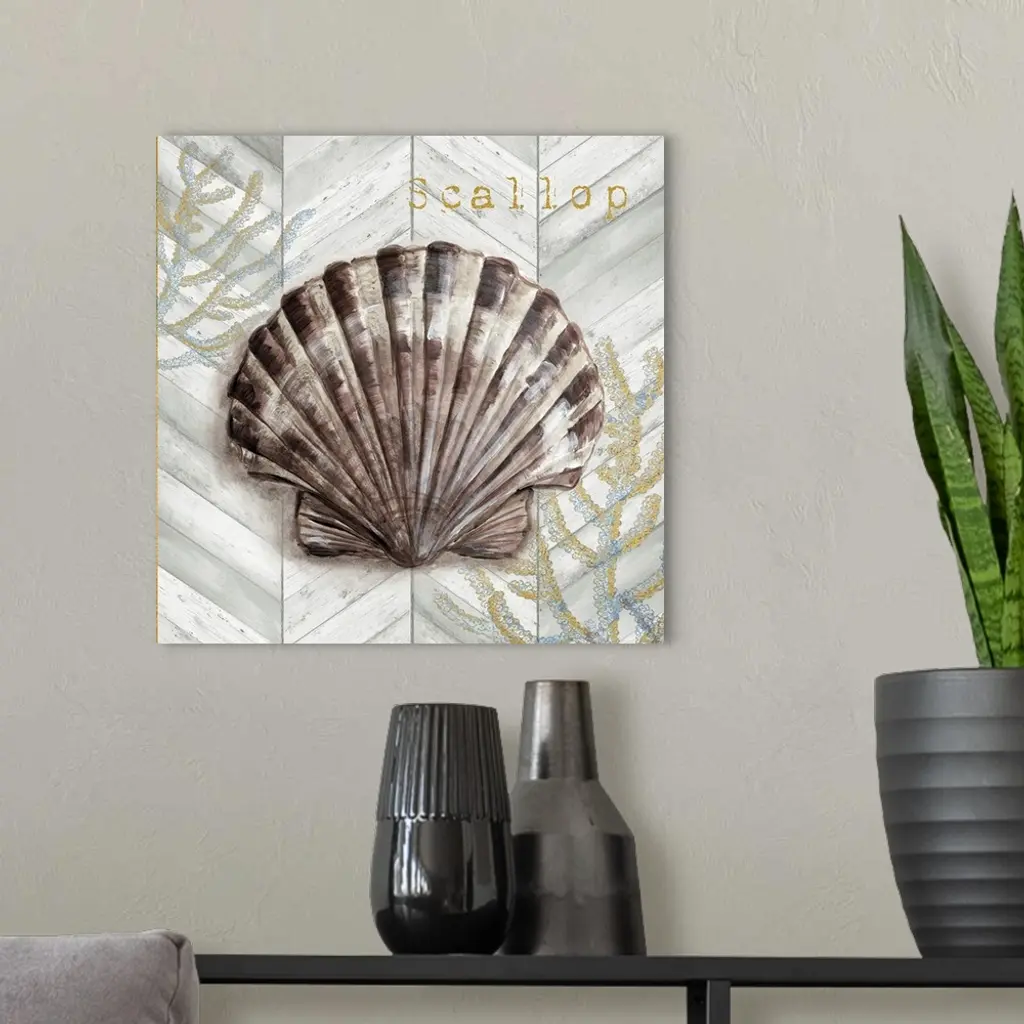 Gray Gold Chevron Scallop Shell wall art for home and office decor. Discover canvas art prints, photos, mural, big canvas art and framed wall art in GreatBigCanvas.com's varied collections.