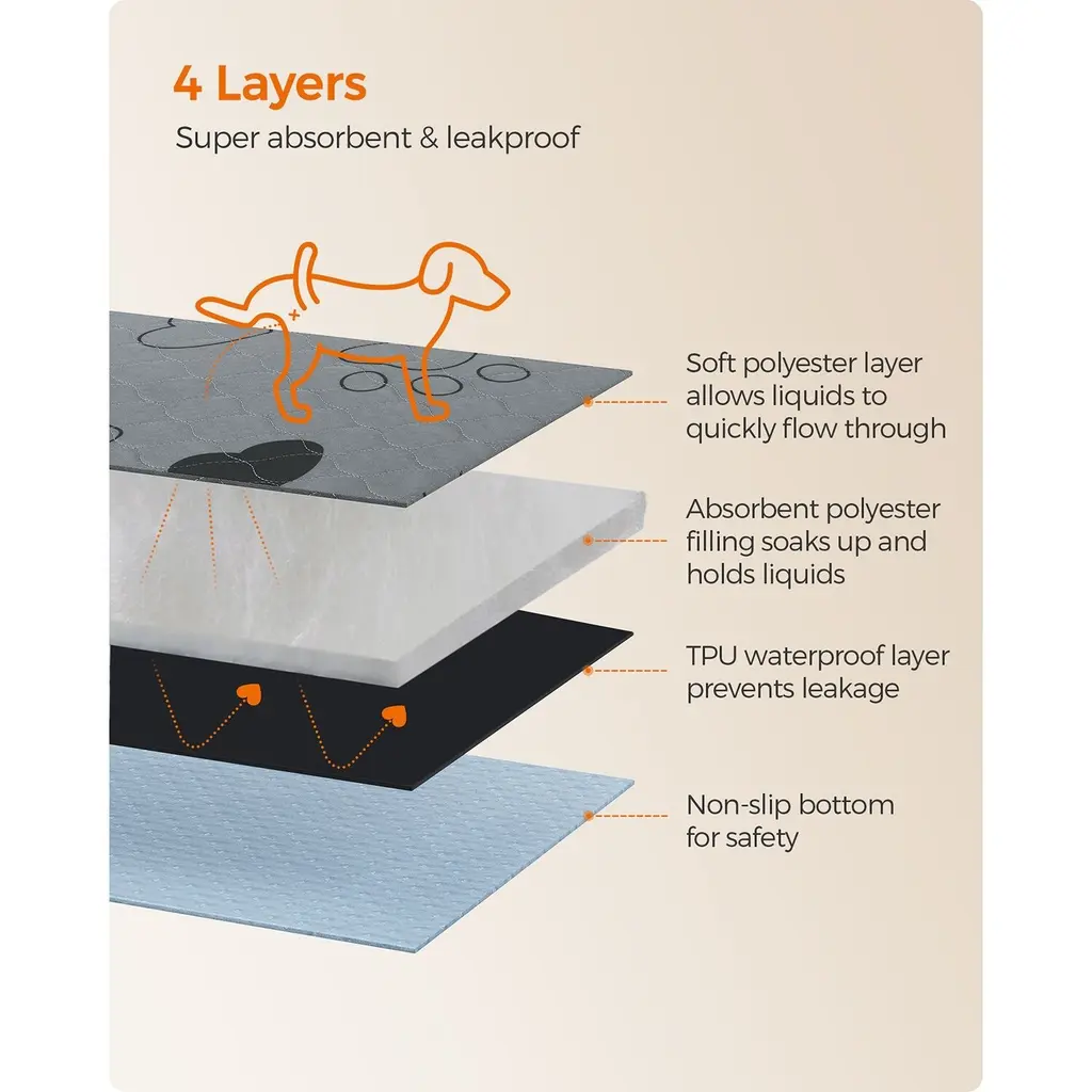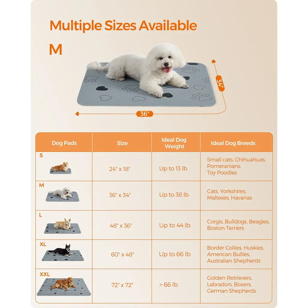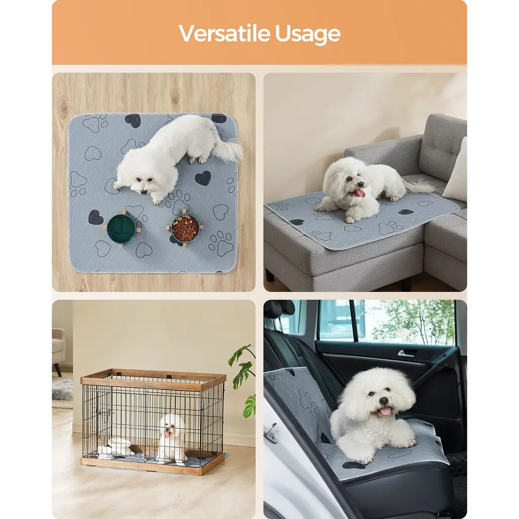 Gray Polyester Washable 2-Pack Dog Pee Pads With Waterproof Backing - 36"l X 34"w (91 X 86 Cm)
