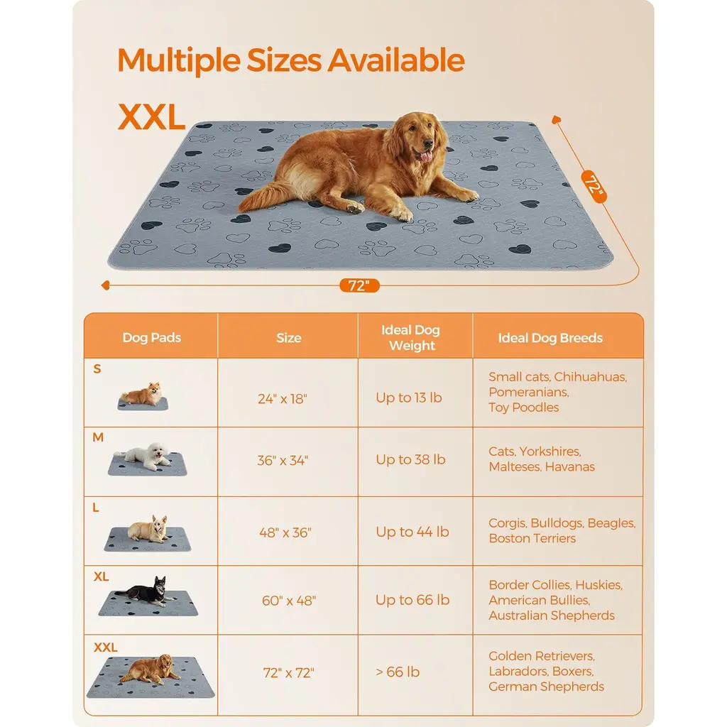 Gray Polyester Washable 2-Pack Dog Pee Pads With Waterproof Backing - 72"l X 72"w (183 X 183 Cm