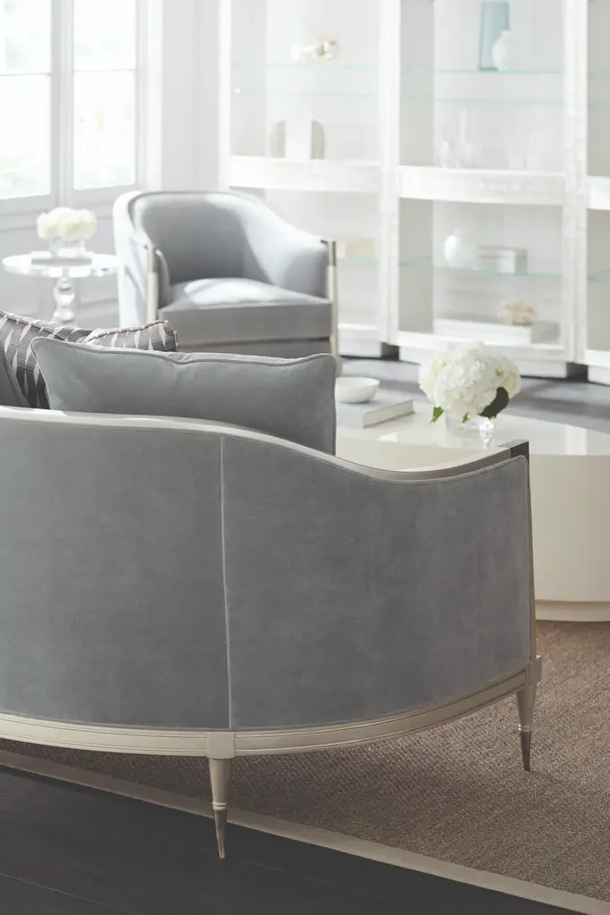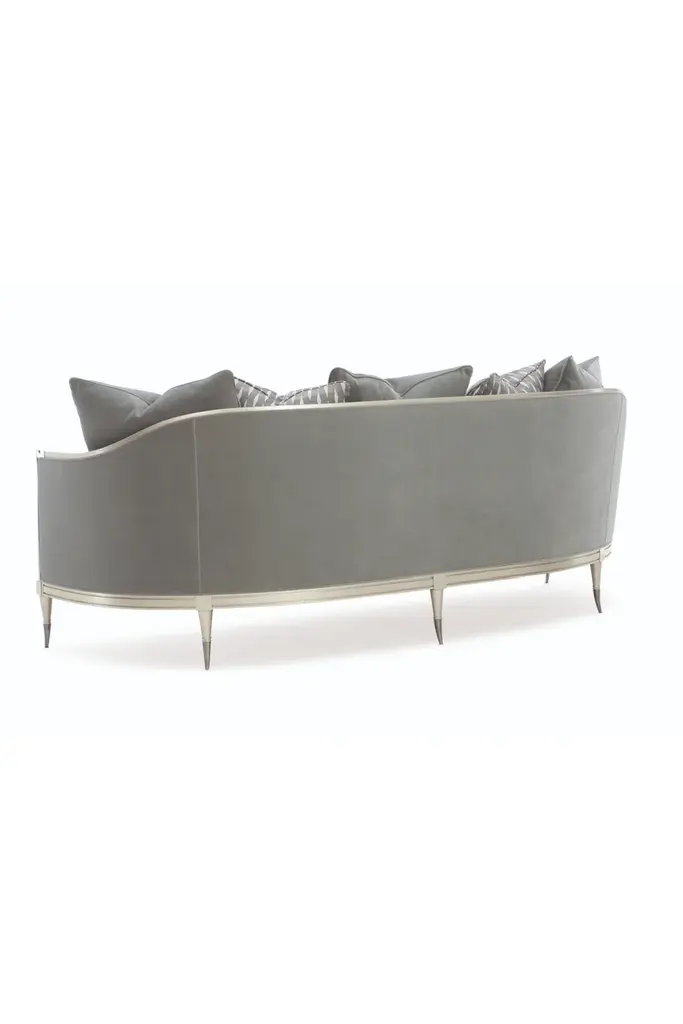 For those who love our best-selling design Black Beauty, you’ll adore the newest iteration that’s making a splash. This sofa’s softly curved silhouette is tailored to perfection and outlined in illuminating Soft Silver Paint. Delicate metal ferrules and metal knuckles on the front arms draw their inspiration from an antique Italian parlor chair. Sumptuous pillows in coordinating tones add comfort and fashion to the overall design of this irresistible sofa.