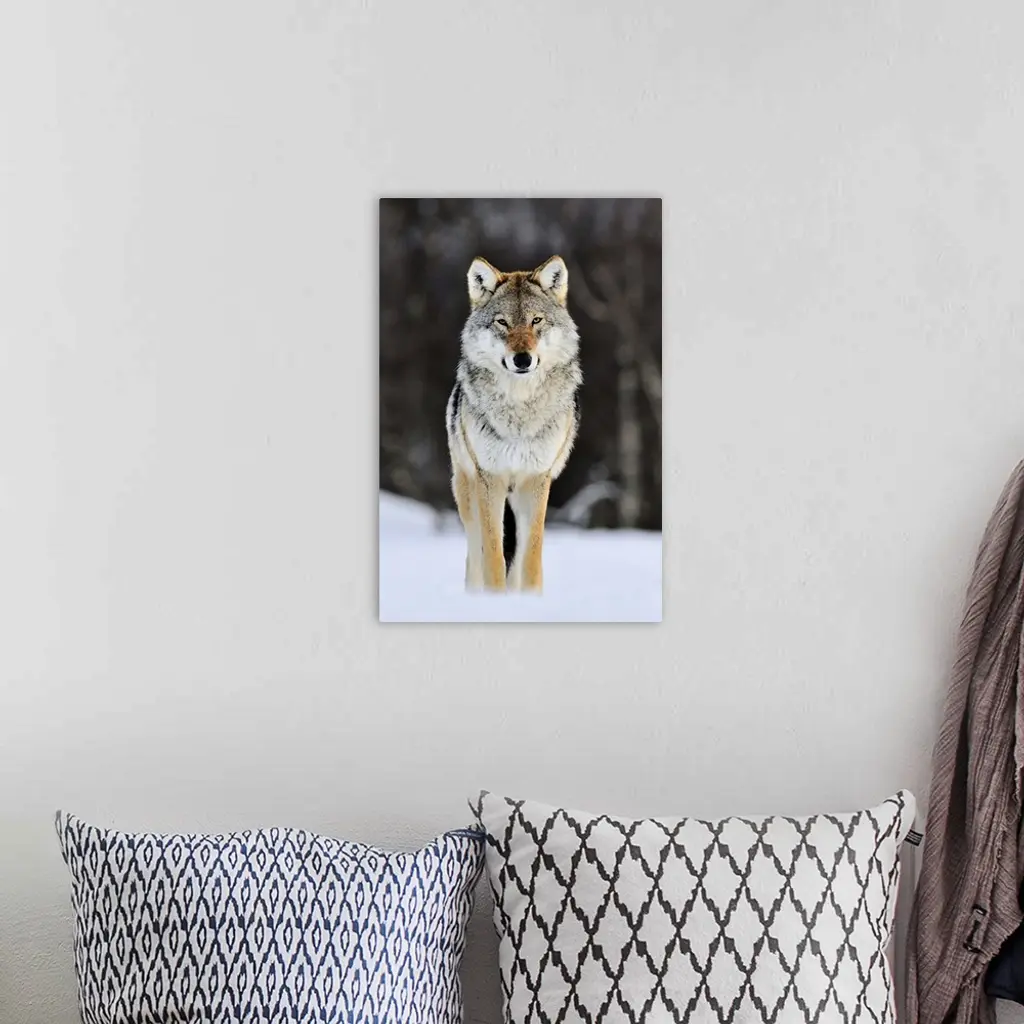Gray Wolf (Canis Lupus) Standing In The Snow, Norway