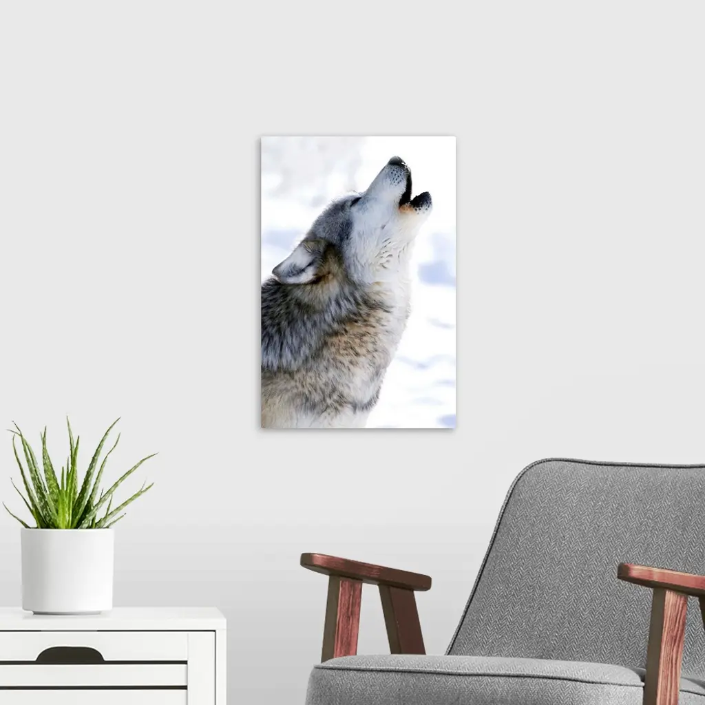 Gray Wolf Howling wall art for home and office decor. Discover canvas art prints, photos, mural, big canvas art and framed wall art in GreatBigCanvas.com's varied collections.