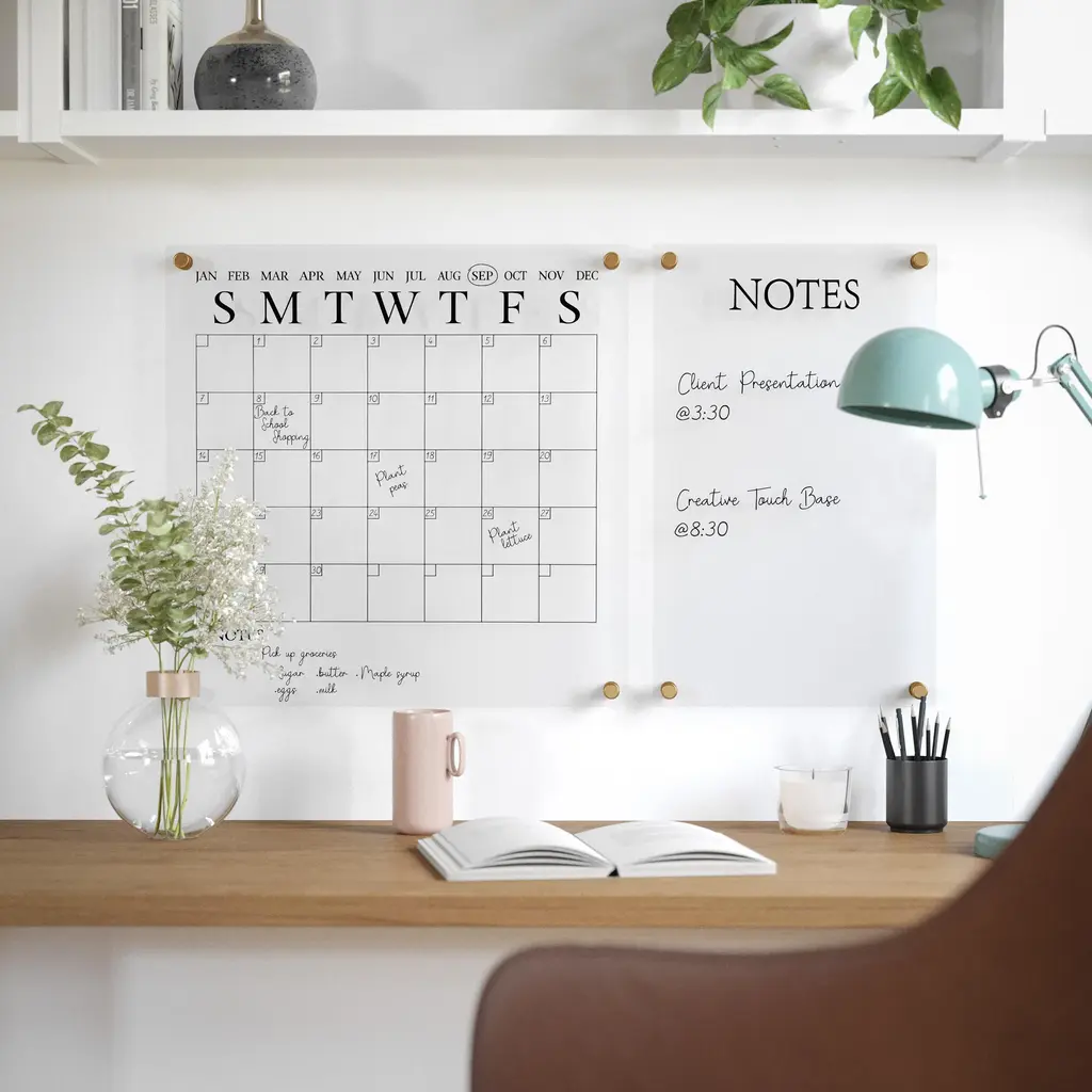 Grayson Acrylic Wall Calendar And Notes Board With Dry Erase Marker And Mounting Hardware, Set Of 2