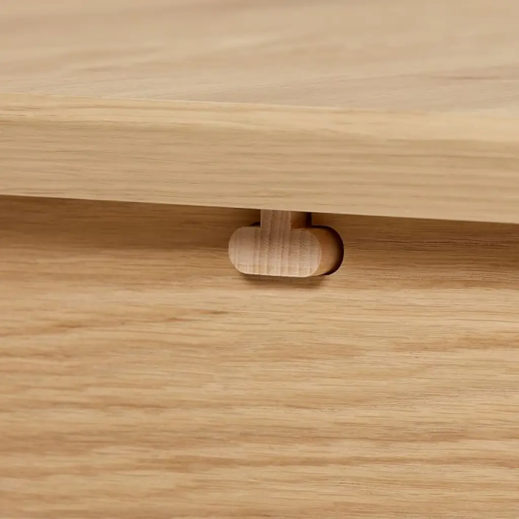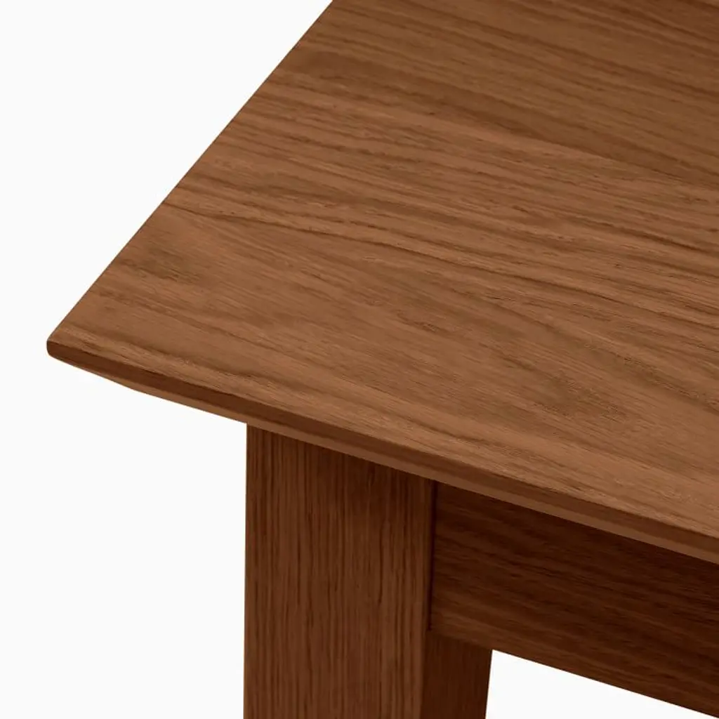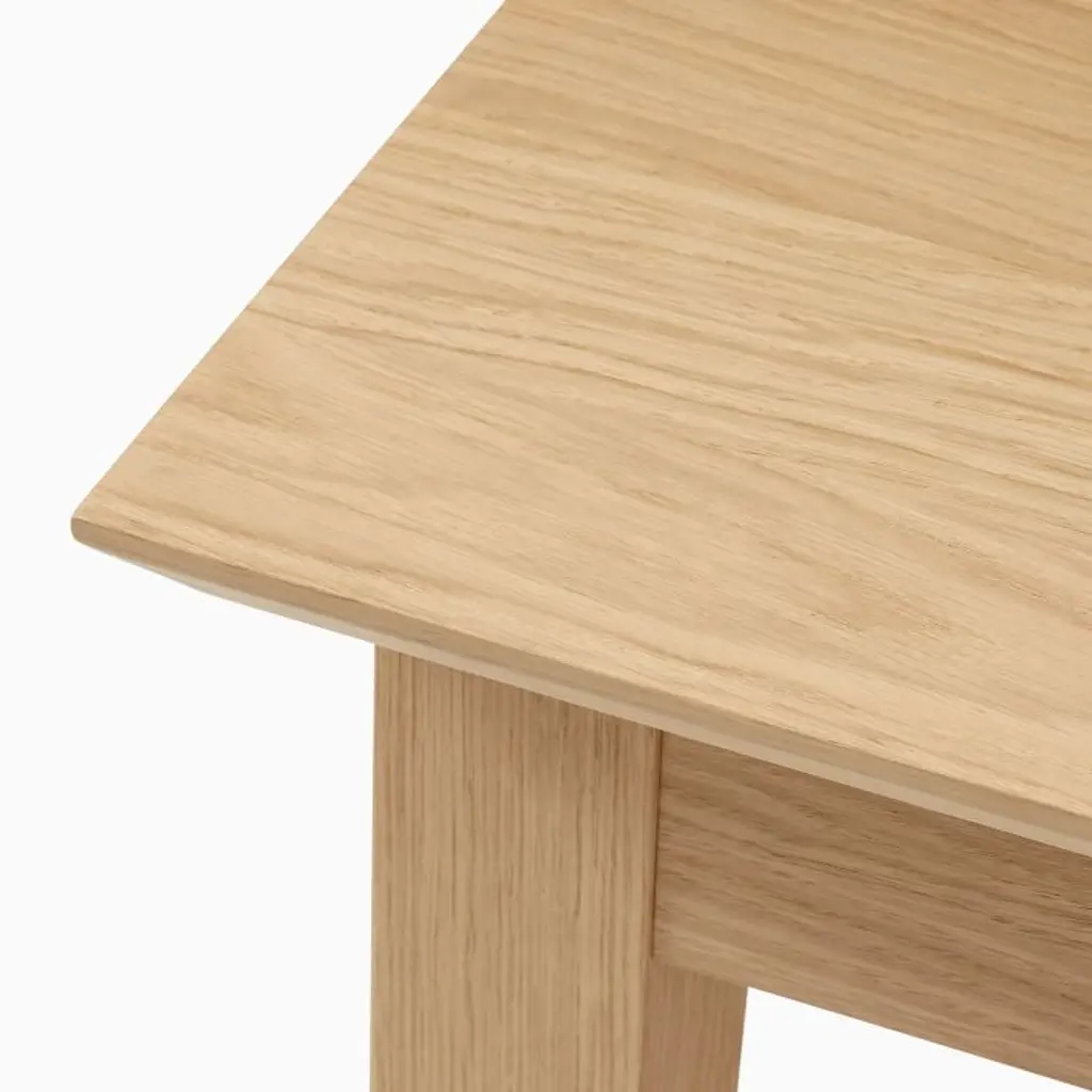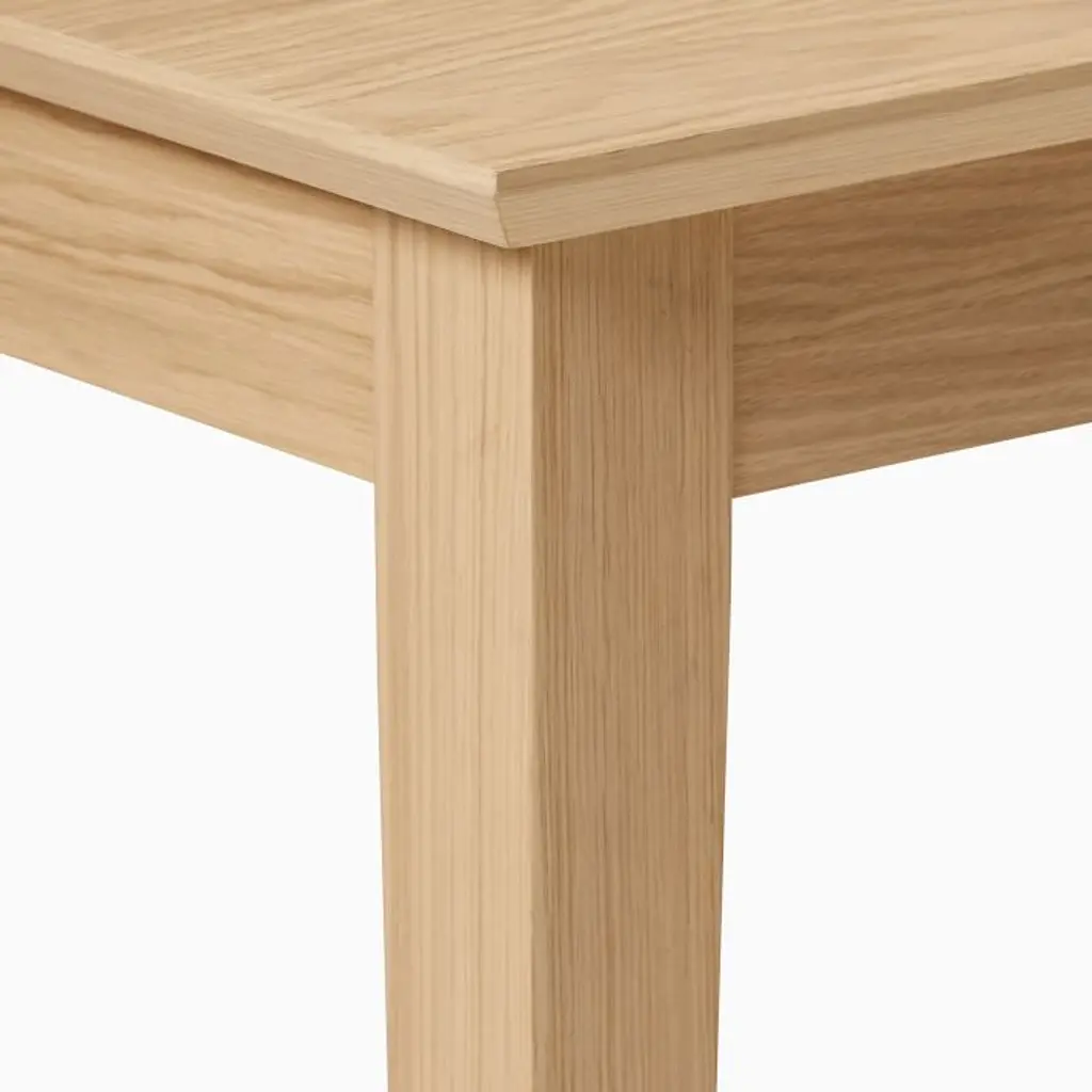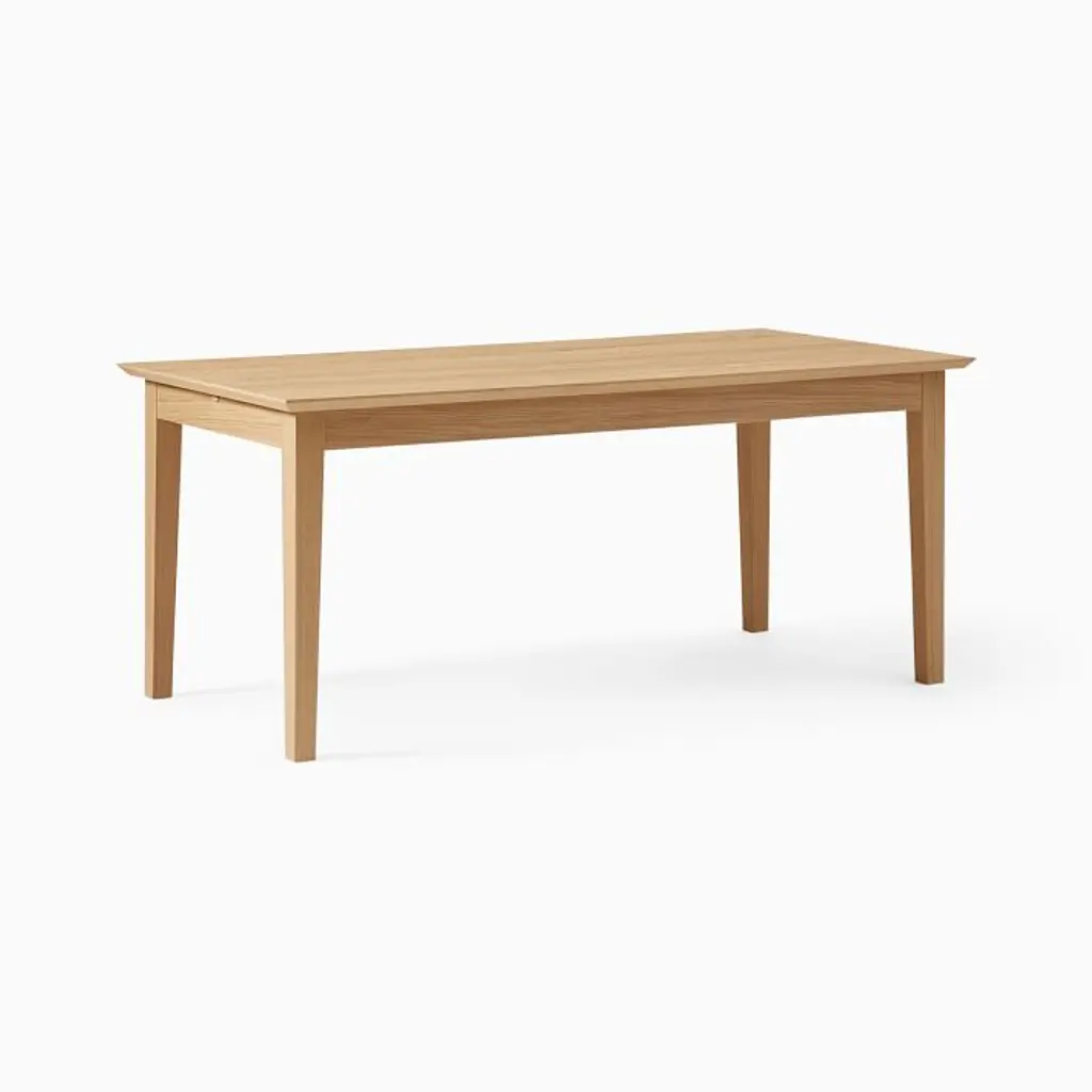 Oak: Solid wood and oak veneer over engineered wood in a Blonde finish. Walnut: Solid wood and walnut veneer over engineered wood in a Walnut finish. Made with FSC®-certified wood from responsibly managed forests. Table expands via a drop-in, self-storing leaf (included). Leaf has variations in finish and grain that may differ from the rest of the table. Legs have built-in levelers to adapt to varying floor levels. Made in Romania.