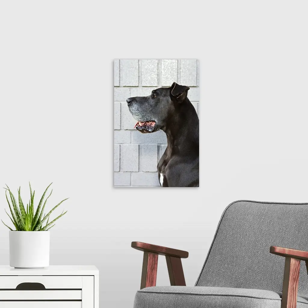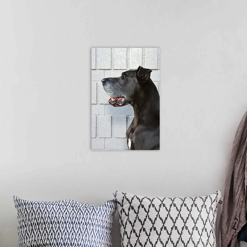 Great Dane standing against a patterned wall wall art for home and office decor. Discover canvas art prints, photos, mural, big canvas art and framed wall art in GreatBigCanvas.com's varied collections.