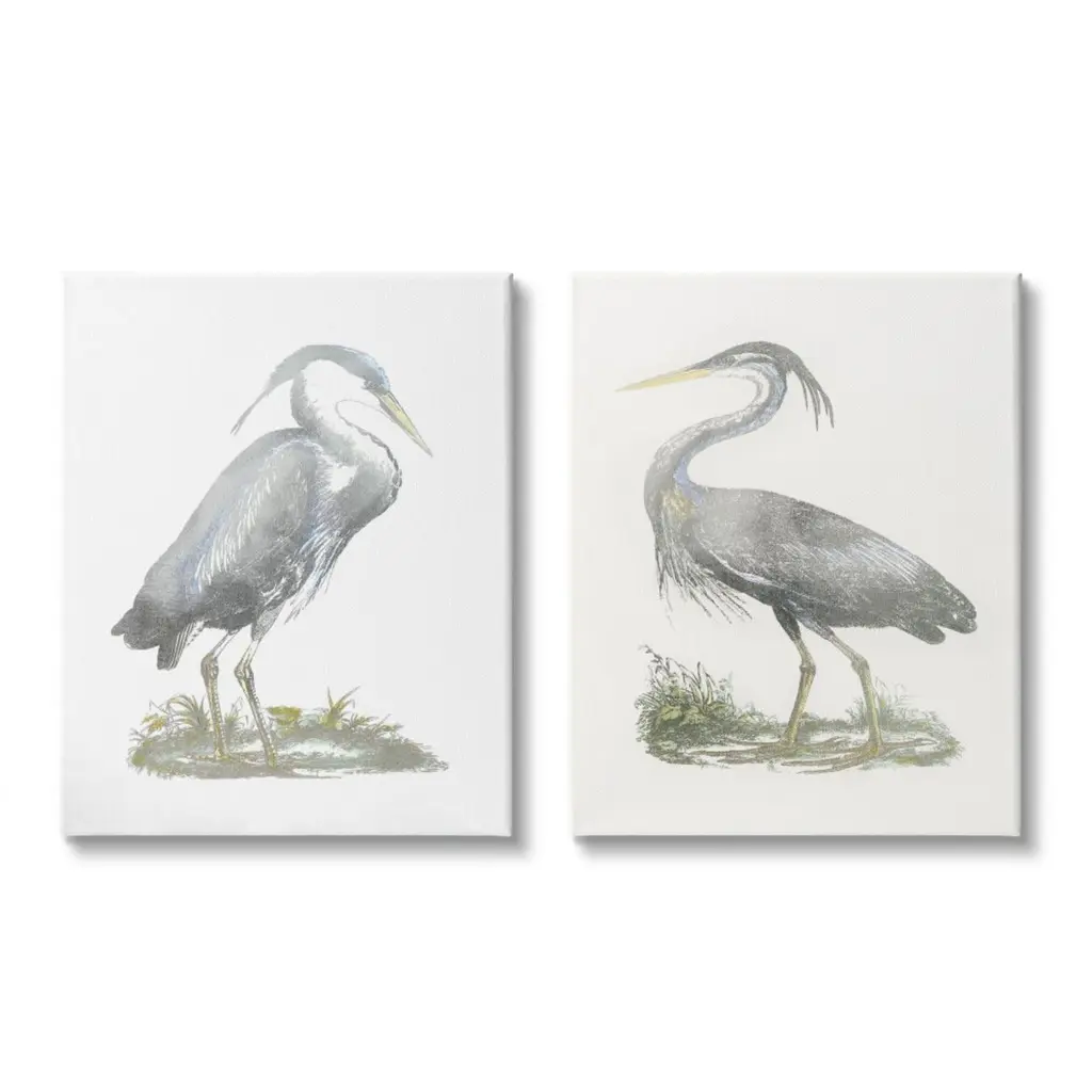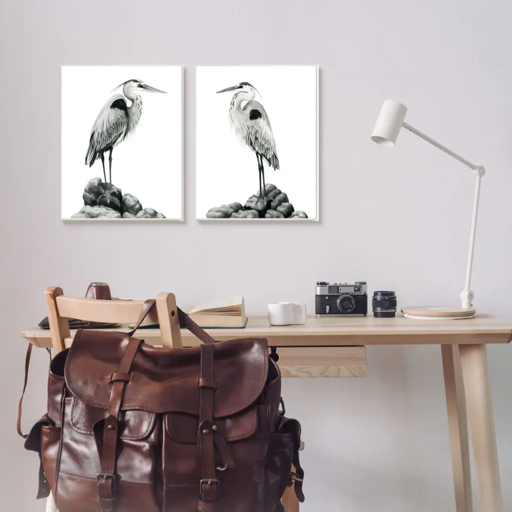 Great Herons Standing Rocks Black White Bird Portraits,13 X 19