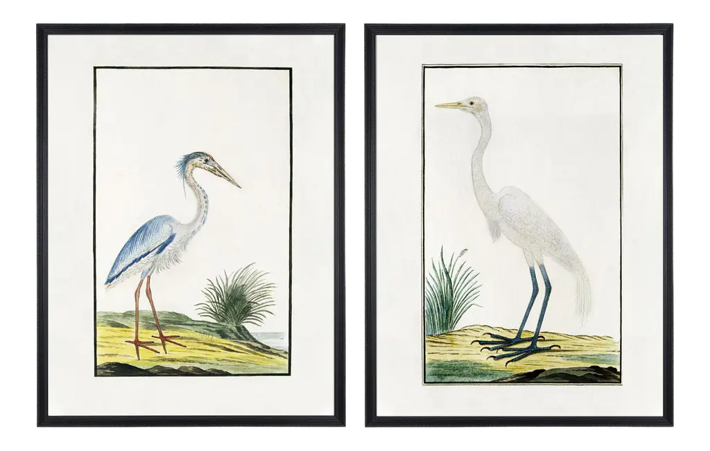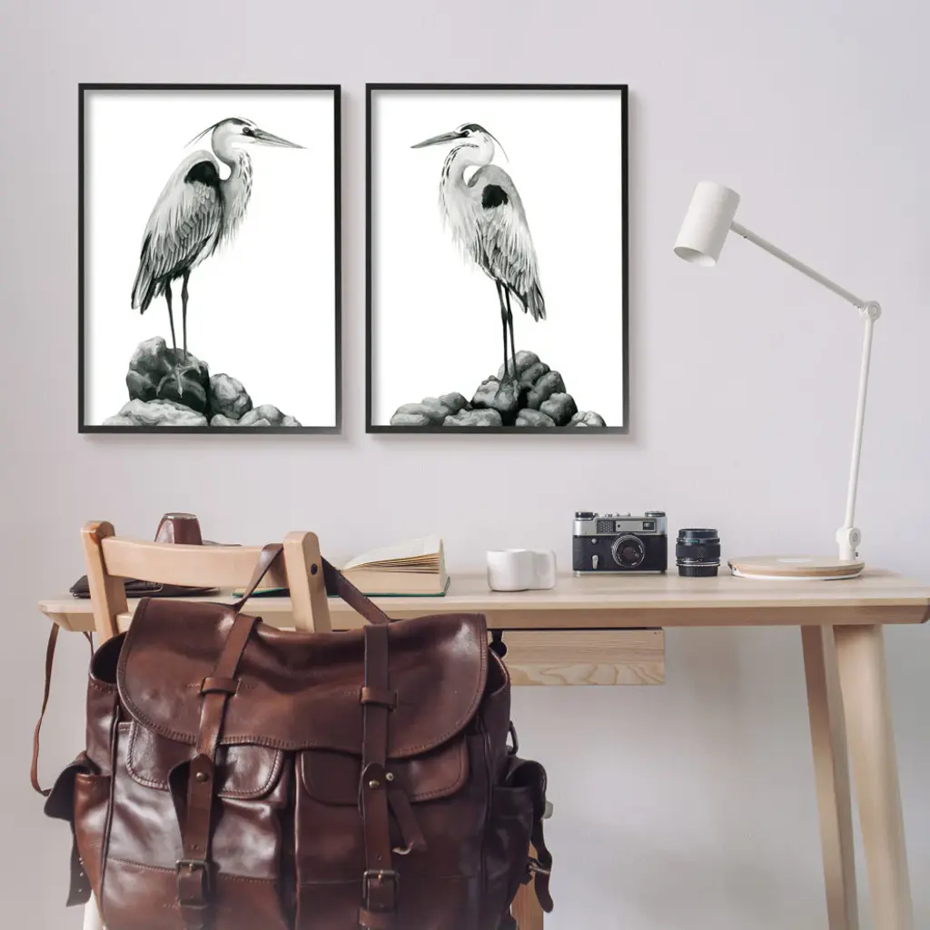Great Herons Standing Rocks Black White Bird Portraits,24 X 30