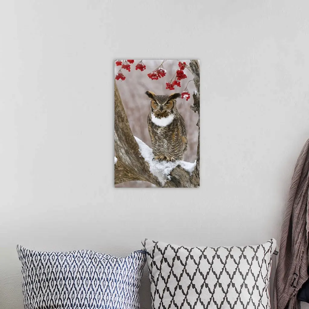 Great Horned Owl (Bubo Virginianus) In Winter, Howell Nature Center, Michigan