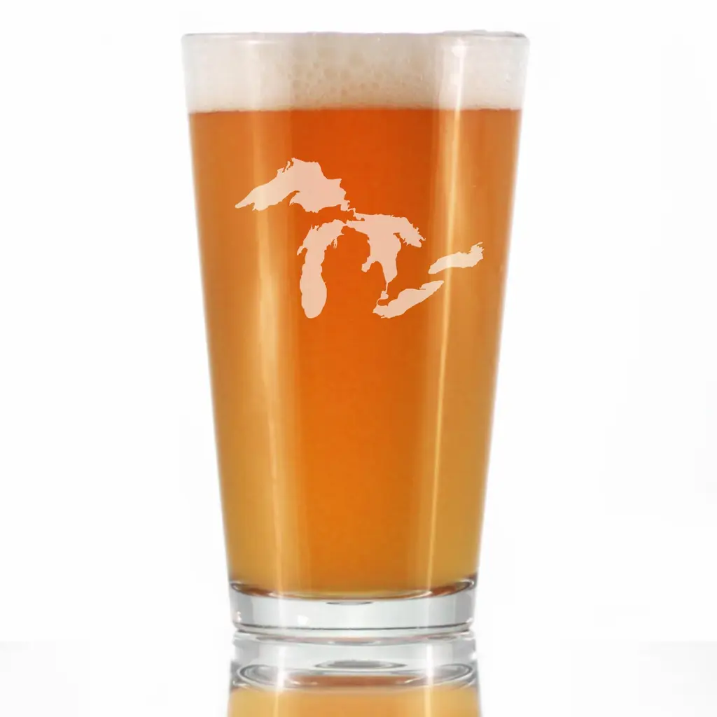 Great Lakes - Beer Pint Glass - Midwestern Gifts - 16 Ounce - Clear