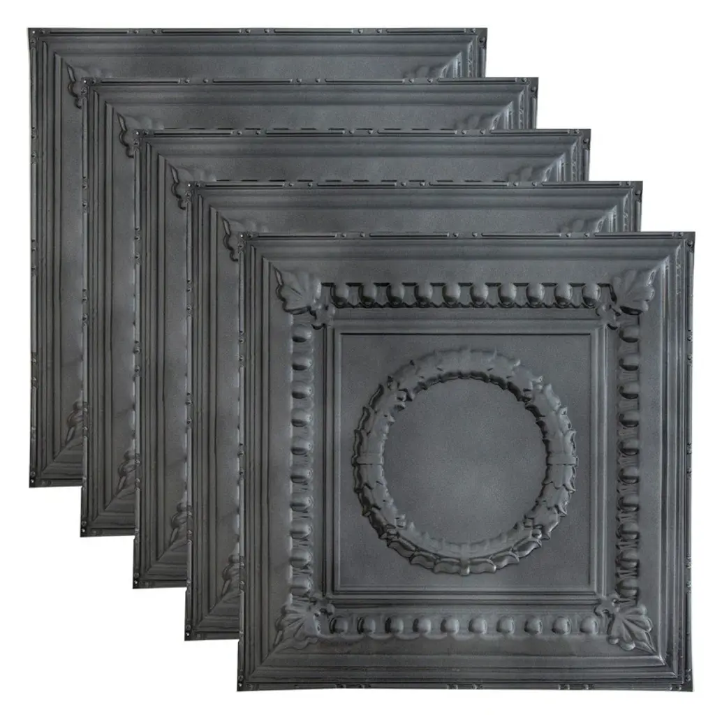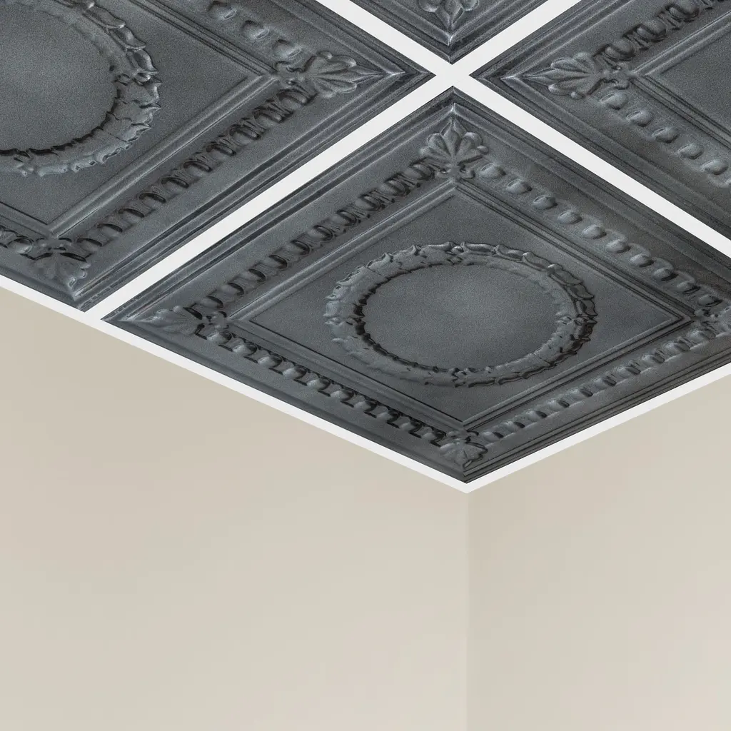 Great Lakes Tin Ceilings provide the classic look of yesteryear with authentic recreations that make a lasting impression in any space. The ceiling tiles are available in both nail-up and lay-in options in numerous styles and finishes. The nail-up tiles are easily applied with nails, screws, or glue. Finish options range from antique or gloss white to bronze burst and copper offerings. Two crown molding styles are also available and provide a finished look to your project. Panels can be cut with tin snips and allow homeowners to achieve a professional look at an affordable price. • Safer than standard tiles; Great Lakes Tin uses only premium-grade 29-gauge tin-plated steel, tested and awarded the Class A 1-Hour Fire Rating • Cut to fit any space; These tiles can be easily cut with tin snips, trimmed to any shape or size to fit your targeted area • Not just for ceilings; Great Lakes Tin tiles can be used to create an antiqued backsplash or rustic accent wall in your home; choose the finish that complements your decor and get to DIY-ing • Easy to install; Lightweight and durable, these tin tiles come in packs of five 2ft x 2ft panels, preventing the trouble and danger of dealing with bulky sheets of metal; simply drop in the tiles to create a beautiful new ceiling in no time; matching crown molding is also available • High quality materials; Tiles are made from genuine tin-plated steel, not plastic or foam board; achieve the rustic authenticity you envision with our one-of-a-kind tin ceiling panels; The Matte White tile has a soft, satin white finish with a matte topcoat