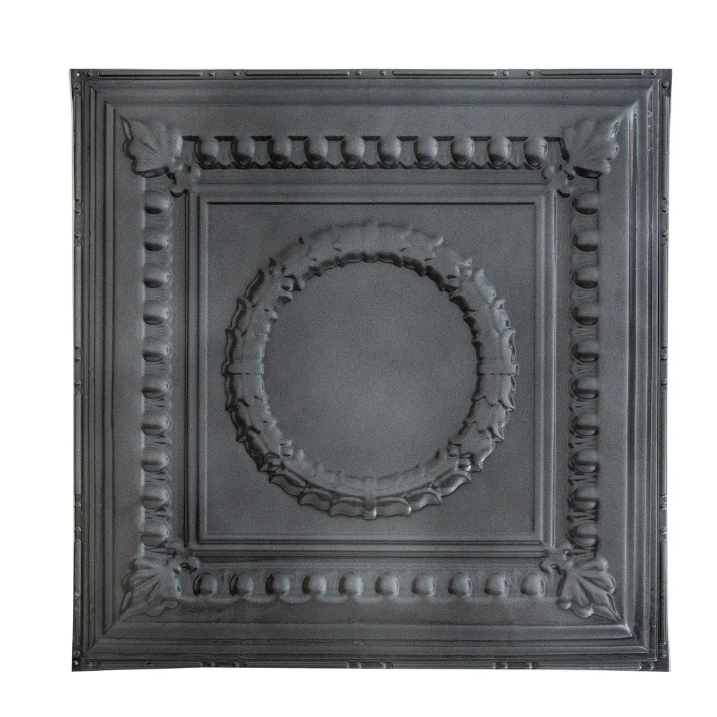 Great Lakes Tin Ceilings provide the classic look of yesteryear with authentic recreations that make a lasting impression in any space. The ceiling tiles are available in both nail-up and lay-in options in numerous styles and finishes. The nail-up tiles are easily applied with nails, screws, or glue. Finish options range from antique or gloss white to bronze burst and copper offerings. Two crown molding styles are also available and provide a finished look to your project. Panels can be cut with tin snips and allow homeowners to achieve a professional look at an affordable price. • Safer than standard tiles; Great Lakes Tin uses only premium-grade 29-gauge tin-plated steel, tested and awarded the Class A 1-Hour Fire Rating • Cut to fit any space; These tiles can be easily cut with tin snips, trimmed to any shape or size to fit your targeted area • Not just for ceilings; Great Lakes Tin tiles can be used to create an antiqued backsplash or rustic accent wall in your home; choose the finish that complements your decor and get to DIY-ing • Easy to install; Lightweight and durable, these tin tiles come in packs of five 2ft x 2ft panels, preventing the trouble and danger of dealing with bulky sheets of metal; simply drop in the tiles to create a beautiful new ceiling in no time; matching crown molding is also available • High quality materials; Tiles are made from genuine tin-plated steel, not plastic or foam board; achieve the rustic authenticity you envision with our one-of-a-kind tin ceiling panels; The Matte White tile has a soft, satin white finish with a matte topcoat