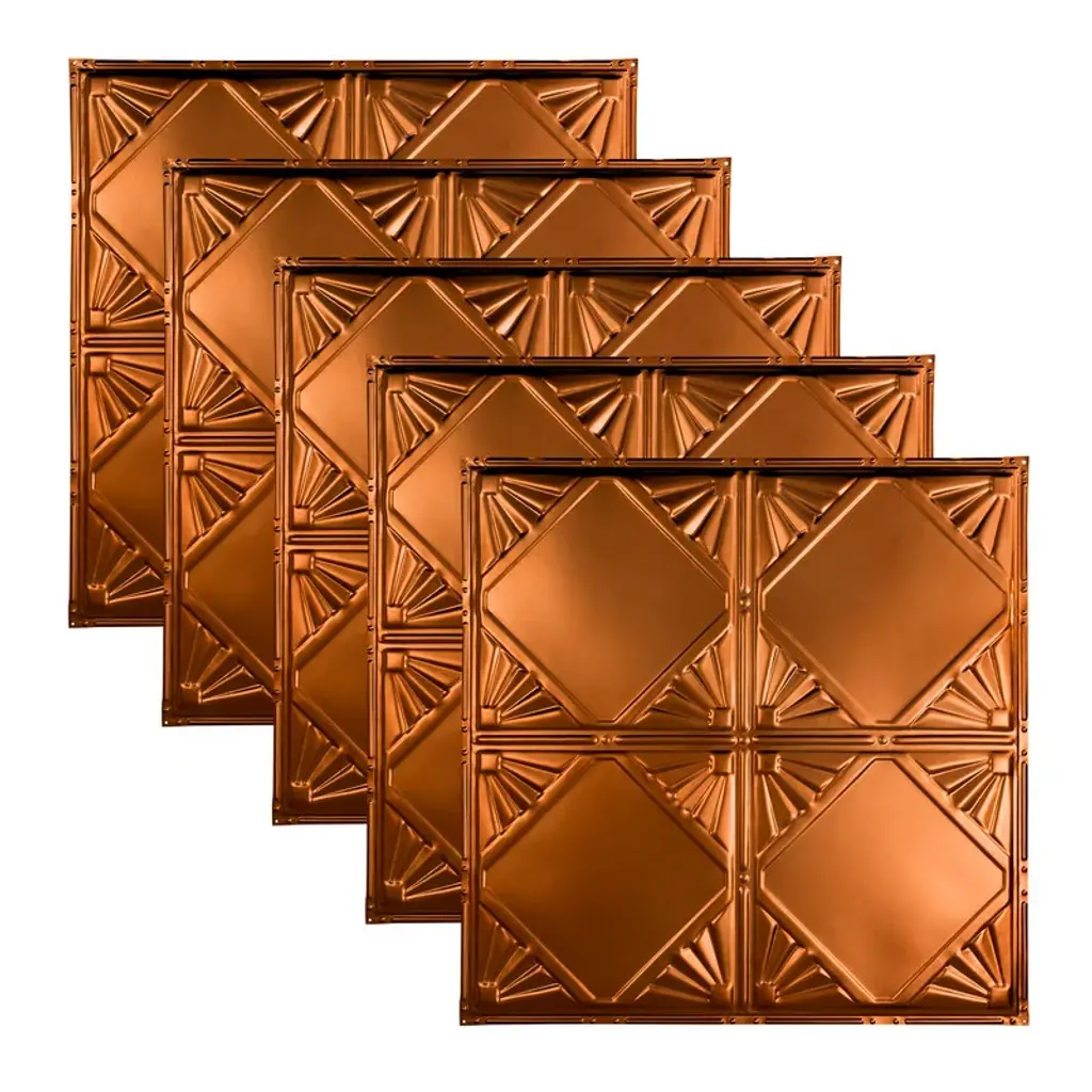 Great Lakes Tin Ceilings provide the classic look of yesteryear with authentic recreations that make a lasting impression in any space. The ceiling tiles are available in both nail-up and lay-in options in numerous styles and finishes. The nail-up tiles are easily applied with nails, screws, or glue. Finish options range from antique or gloss white to bronze burst and copper offerings. Two crown molding styles are also available and provide a finished look to your project. Panels can be cut with tin snips and allow homeowners to achieve a professional look at an affordable price. • Safer than standard tiles; Great Lakes Tin uses only premium-grade 29-gauge tin-plated steel, tested and awarded the Class A 1-Hour Fire Rating • Cut to fit any space; These tiles can be easily cut with tin snips, trimmed to any shape or size to fit your targeted area • Not just for ceilings; Great Lakes Tin tiles can be used to create an antiqued backsplash or rustic accent wall in your home; choose the finish that complements your decor and get to DIY-ing • Easy to install; Lightweight and durable, these tin tiles come in packs of five 2ft x 2ft panels, preventing the trouble and danger of dealing with bulky sheets of metal; simply drop in the tiles to create a beautiful new ceiling in no time; matching crown molding is also available • High quality materials; Tiles are made from genuine tin-plated steel, not plastic or foam board; achieve the rustic authenticity you envision with our one-of-a-kind tin ceiling panels; The Matte White tile has a soft, satin white finish with a matte topcoat