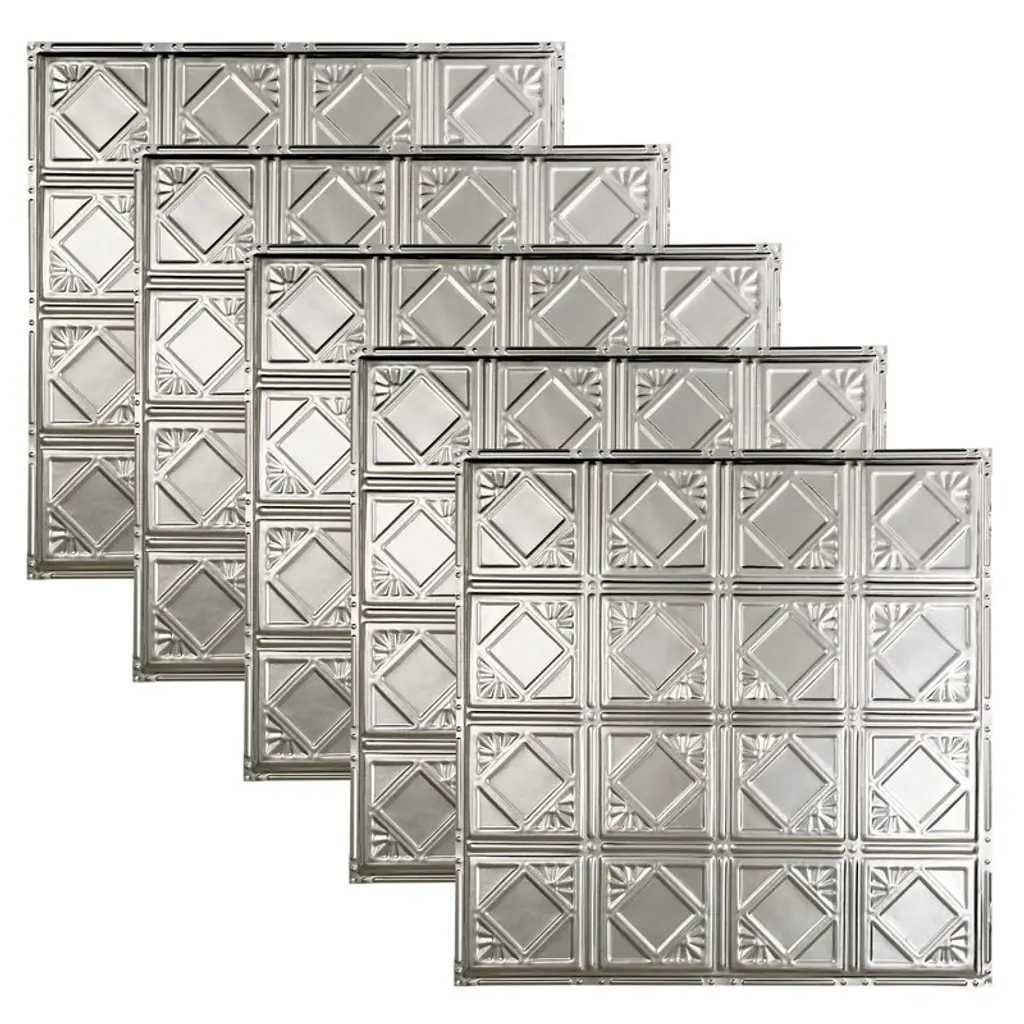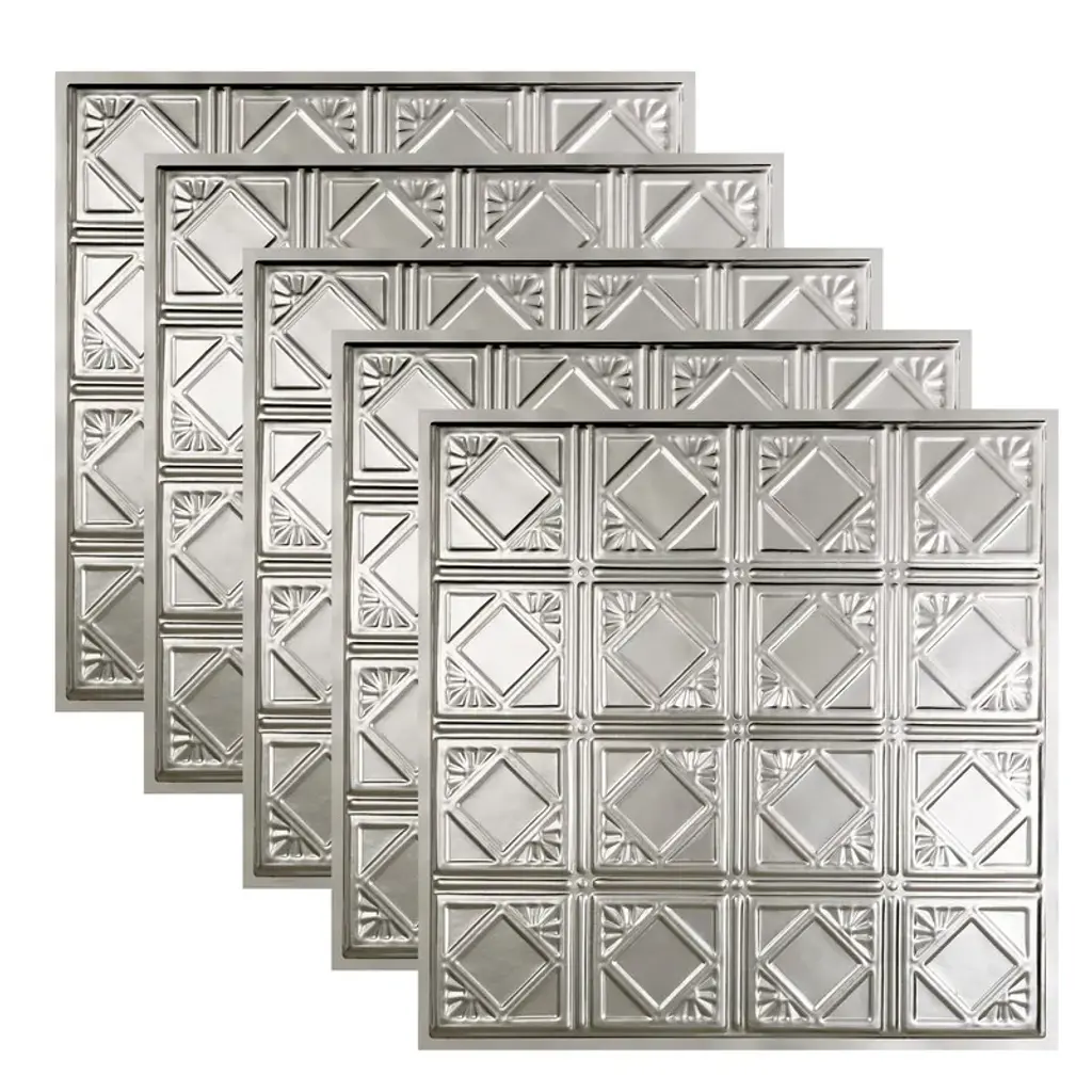 Great Lakes Tin Ceilings provide the classic look of yesteryear with authentic recreations that make a lasting impression in any space. The ceiling tiles are available in both nail-up and lay-in options in numerous styles and finishes. The nail-up tiles are easily applied with nails, screws, or glue. Finish options range from antique or gloss white to bronze burst and copper offerings. Two crown molding styles are also available and provide a finished look to your project. Panels can be cut with tin snips and allow homeowners to achieve a professional look at an affordable price. • Safer than standard tiles; Great Lakes Tin uses only premium-grade 29-gauge tin-plated steel, tested and awarded the Class A 1-Hour Fire Rating • Cut to fit any space; These tiles can be easily cut with tin snips, trimmed to any shape or size to fit your targeted area • Not just for ceilings; Great Lakes Tin tiles can be used to create an antiqued backsplash or rustic accent wall in your home; choose the finish that complements your decor and get to DIY-ing • Easy to install; Lightweight and durable, these tin tiles come in packs of five 2ft x 2ft panels, preventing the trouble and danger of dealing with bulky sheets of metal; simply drop in the tiles to create a beautiful new ceiling in no time; matching crown molding is also available • High quality materials; Tiles are made from genuine tin-plated steel, not plastic or foam board; achieve the rustic authenticity you envision with our one-of-a-kind tin ceiling panels; The Matte White tile has a soft, satin white finish with a matte topcoat