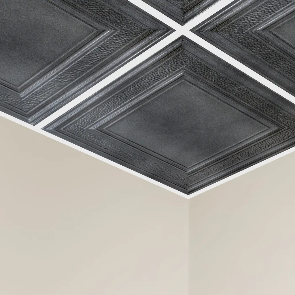 Great Lakes Tin Ceilings provide the classic look of yesteryear with authentic recreations that make a lasting impression in any space. The ceiling tiles are available in both nail-up and lay-in options in numerous styles and finishes. The nail-up tiles are easily applied with nails, screws, or glue. Finish options range from antique or gloss white to bronze burst and copper offerings. Two crown molding styles are also available and provide a finished look to your project. Panels can be cut with tin snips and allow homeowners to achieve a professional look at an affordable price. • Safer than standard tiles; Great Lakes Tin uses only premium-grade 29-gauge tin-plated steel, tested and awarded the Class A 1-Hour Fire Rating • Cut to fit any space; These tiles can be easily cut with tin snips, trimmed to any shape or size to fit your targeted area • Not just for ceilings; Great Lakes Tin tiles can be used to create an antiqued backsplash or rustic accent wall in your home; choose the finish that complements your decor and get to DIY-ing • Easy to install; Lightweight and durable, these tin tiles come in packs of five 2ft x 2ft panels, preventing the trouble and danger of dealing with bulky sheets of metal; simply drop in the tiles to create a beautiful new ceiling in no time; matching crown molding is also available • High quality materials; Tiles are made from genuine tin-plated steel, not plastic or foam board; achieve the rustic authenticity you envision with our one-of-a-kind tin ceiling panels; The Matte White tile has a soft, satin white finish with a matte topcoat
