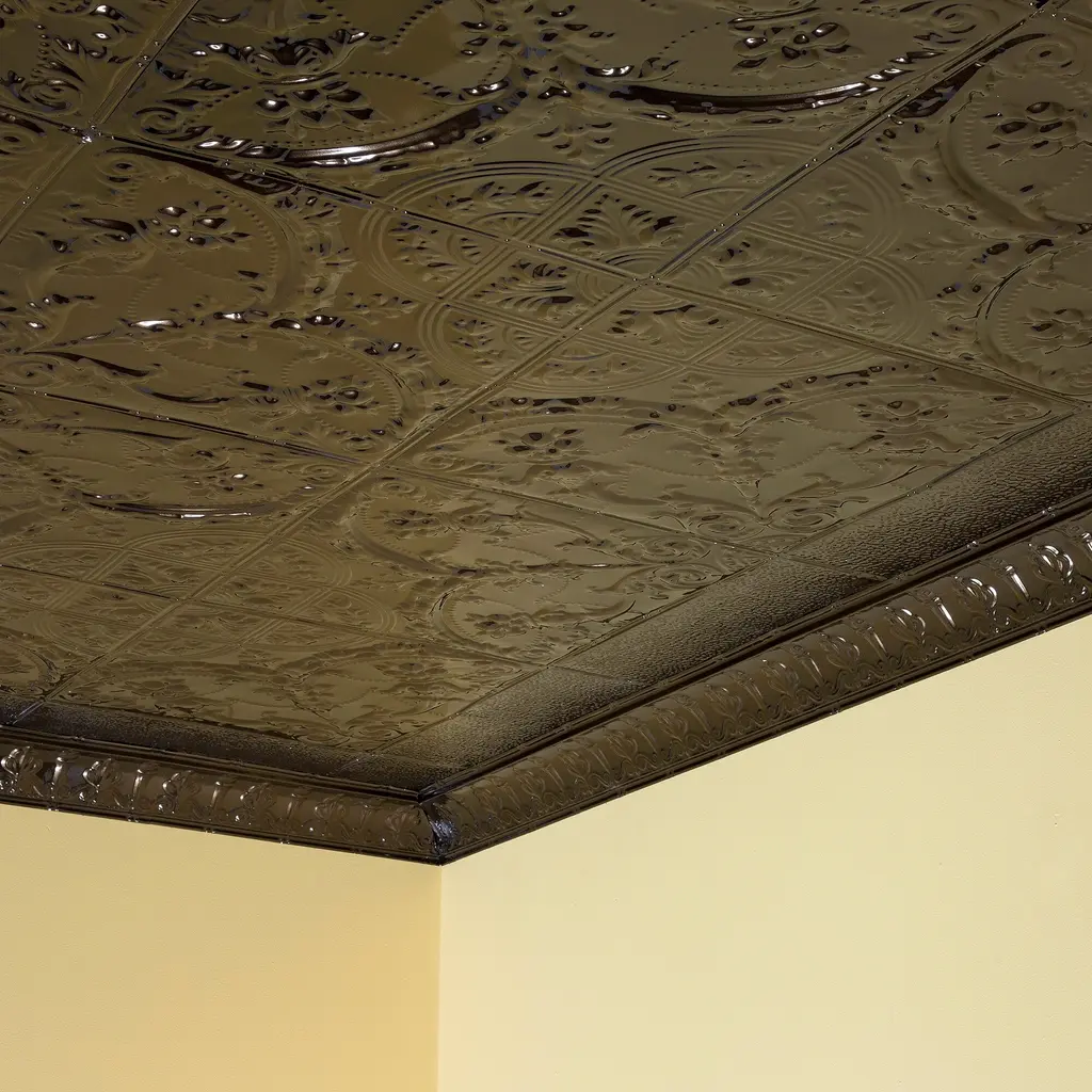 Great Lakes Tin Ceilings provide the classic look of yesteryear with authentic recreations that make a lasting impression in any space. The ceiling tiles are available in both nail-up and lay-in options in numerous styles and finishes. The nail-up tiles are easily applied with nails, screws, or glue. Finish options range from antique or gloss white to bronze burst and copper offerings. Two crown molding styles are also available and provide a finished look to your project. Panels can be cut with tin snips and allow homeowners to achieve a professional look at an affordable price. • Safer than standard tiles; Great Lakes Tin uses only premium-grade 29-gauge tin-plated steel, tested and awarded the Class A 1-Hour Fire Rating • Cut to fit any space; These tiles can be easily cut with tin snips, trimmed to any shape or size to fit your targeted area • Not just for ceilings; Great Lakes Tin tiles can be used to create an antiqued backsplash or rustic accent wall in your home; choose the finish that complements your decor and get to DIY-ing • Easy to install; Lightweight and durable, these tin tiles come in packs of five 2ft x 2ft panels, preventing the trouble and danger of dealing with bulky sheets of metal; simply drop in the tiles to create a beautiful new ceiling in no time; matching crown molding is also available • High quality materials; Tiles are made from genuine tin-plated steel, not plastic or foam board; achieve the rustic authenticity you envision with our one-of-a-kind tin ceiling panels; The Matte White tile has a soft, satin white finish with a matte topcoat