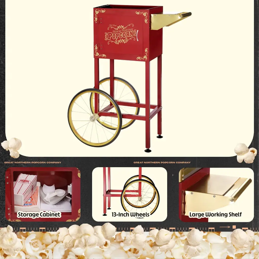 Great Northern Popcorn 8 Oz. Matinee Antique Style Popcorn Maker Machine With Cart - Red