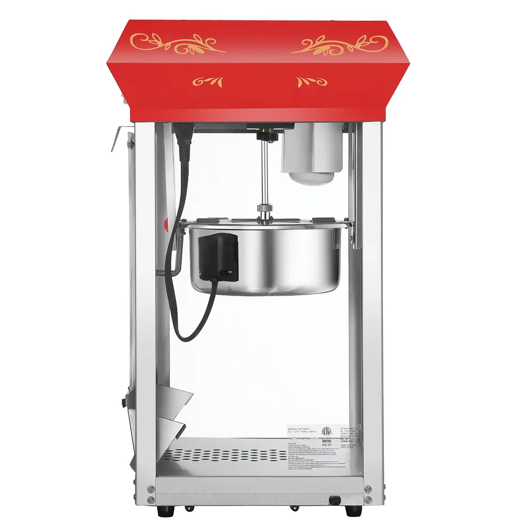 If you are in the market for a popcorn popper, stop looking! These Great Northern Popcorn top quality machines feature stainless steel food-zones, easy cleaning stainless steel kettles, an exclusive warming deck,old-maid drawers (for unpopped kernels), tempered safety glass panels and an industry leading 8 ounce kettle. The antique style design evokes memories of early days at the ballgames,carnivals, or the movie theater. We have combined the best of both worlds -- not only are you getting today's technology, you get an authentic design with all the conveniences of the modern era. We have sold thousands of these units to churches,schools,businesses,daycare centers, varsity/PTA clubs,and more. Of course, our #1 customer is the home owner looking to add a theatrical effect to their home theater. BONUS!We include FREE 3 plastic serving cups, 25 popcorn serving bags, measuring cups and a popcorn scoop with every popper! Features of the Foundation Popper: Deluxe model with 3 control switches and 850 watts. Exclusive whisper quiet motor. Switches include: spot light warmer, stirrer and pot heater. Tempered Safety Glass Walls. High impact Polycarbonate doors. Popcorn supply storage in base. Warming Deck. Built-in warmer light. Popcorn scoop is included. Reject kernel tray. Kernel and oil scoop is included. Heavy-duty powder coated steel and stainless steel construction. Cleans up with water. Makes roughly 3 gallons of popcorn per batch. Works on standard 110 volt. 850 watts (Top Quality and Certified). Top Machine is 17L x 14D x 24.0H. Weight Assembled: 27 lbs. Shipping Weight: 33 lbs. Minor assembly is required. Cart not included. Great Reasons to Buy From the Great Northern Popcorn Company: Whisper Quiet Design--Silent Operation. 8 Ounce Kettle. Warming Deckto keep the popcorn warm and fresh. 3 Switch Design. Tempered glass walls--Tempered glass is scratch resistant and less prone to warping. Richer Color-- Premium paint and enhanced colors. Safer Packing-- double wall stock and extra packing to ensure a safe delivery.