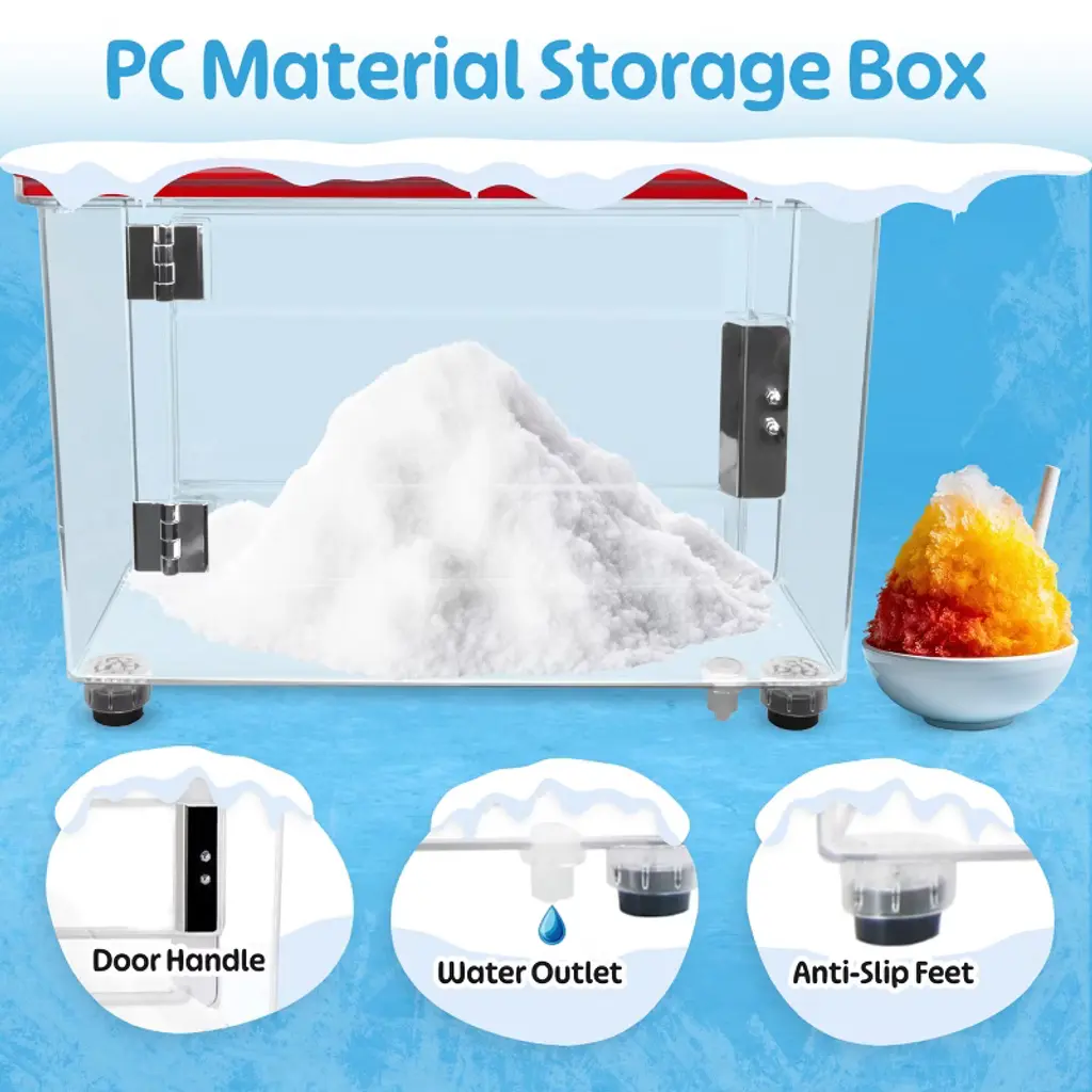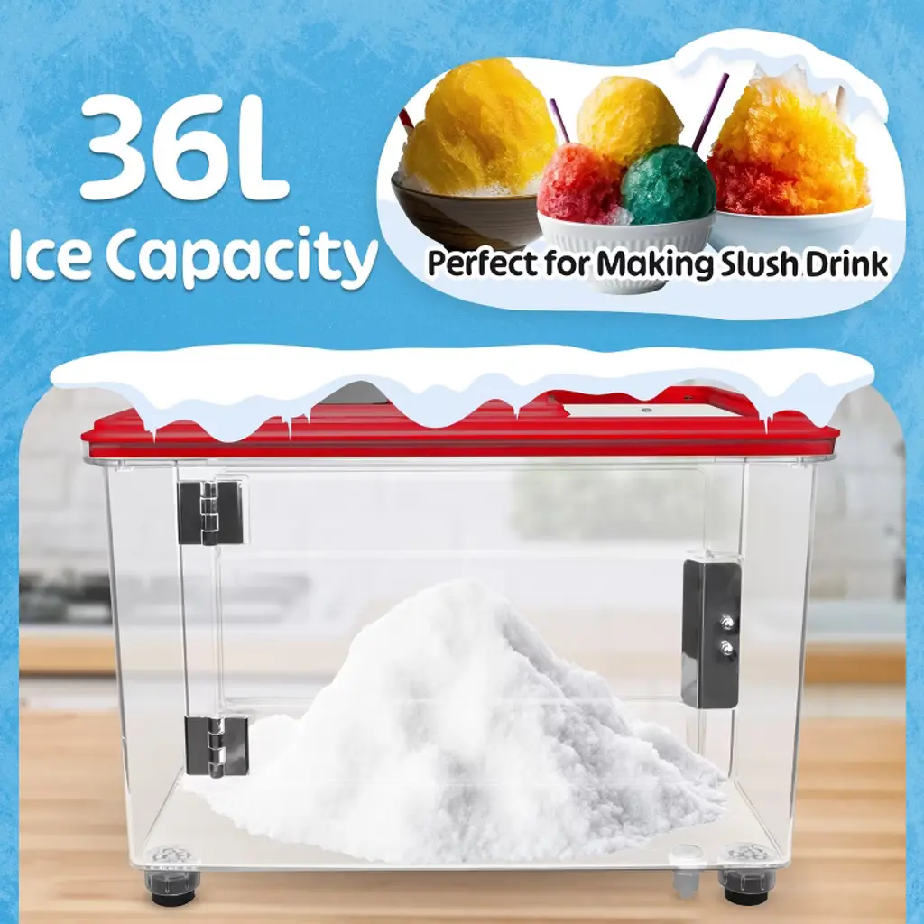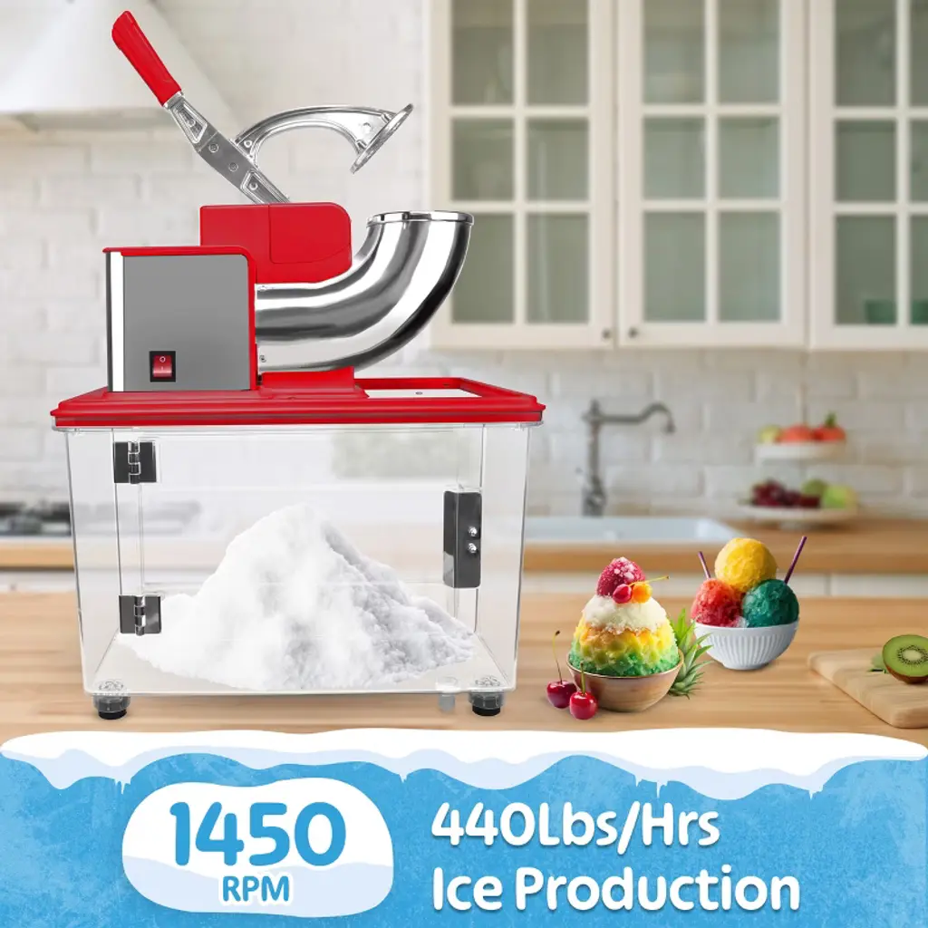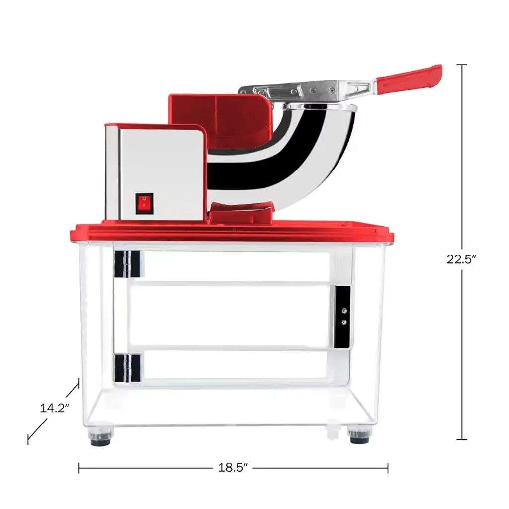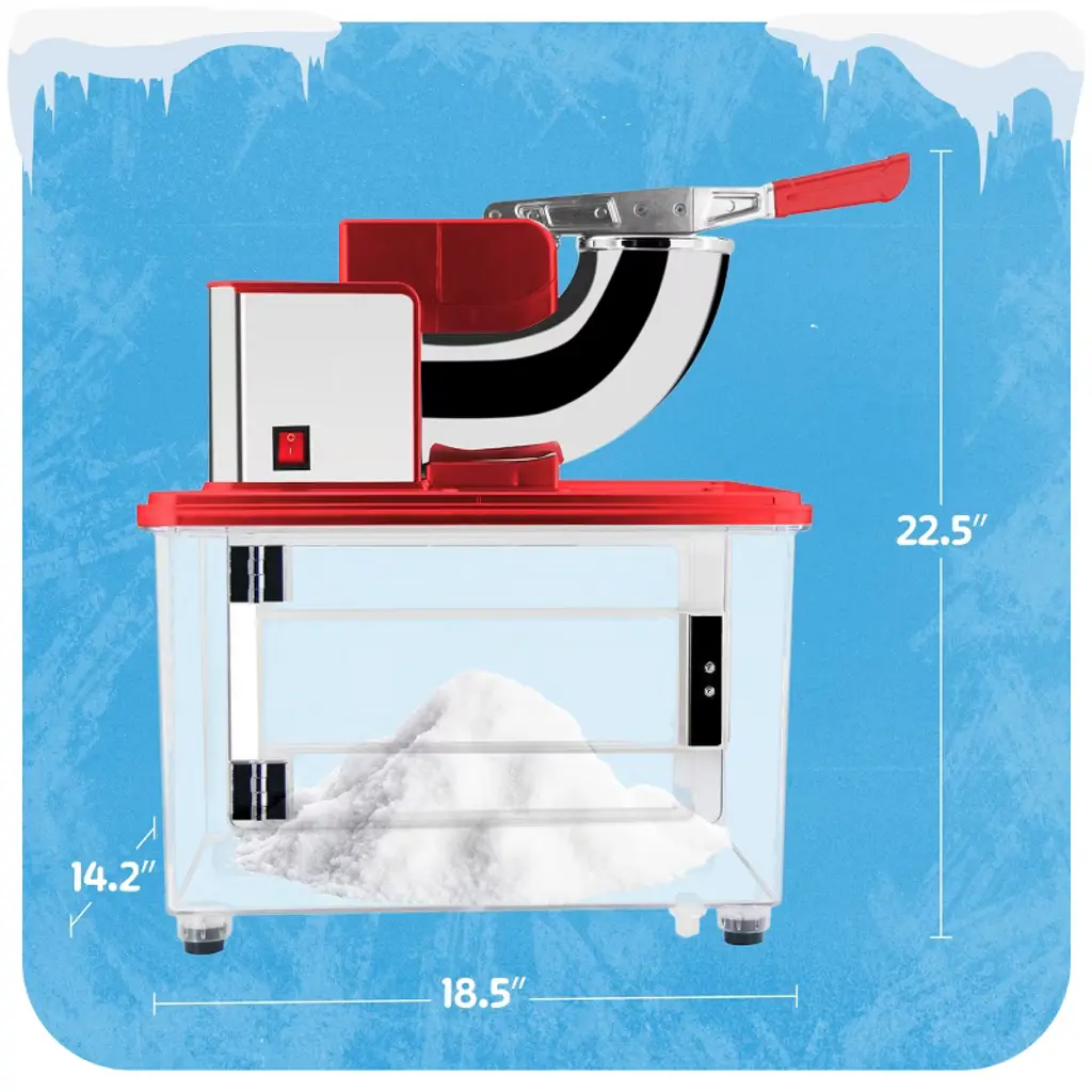 Prepare delicious, crushed ice desserts or drinks for your next party, event, or cookout, with the Polar Blast Snow Cone Machine by Great Northern Popcorn. The powerful 1/4 HP motor of this shaved ice machine operates at 1420 RPMs to produce up to 500lbs of crushed ice per hour. This ice chip maker features sturdy acrylic wall panels that allow you to see the ice inside from all angles and a heavy-duty stainless-steel hopper to shave fine ice with ease. The safety interlock ensures safe operation, hour after hour, while the sturdy, high-impact construction of this snow cone maker is durable, lightweight, and easy to clean, so you can enjoy perfect shaved ice treats anytime. Important: Great Northern Popcorn is committed to providing the consumer with the absolute best price and value on our entire line of products. Note: This is an exclusive product of Great Northern Popcorn and only Shave Ice Machines by Great Northern Popcorn are guaranteed to be genuine. Avoid buying counterfeit products and transacting with unauthorized sellers.