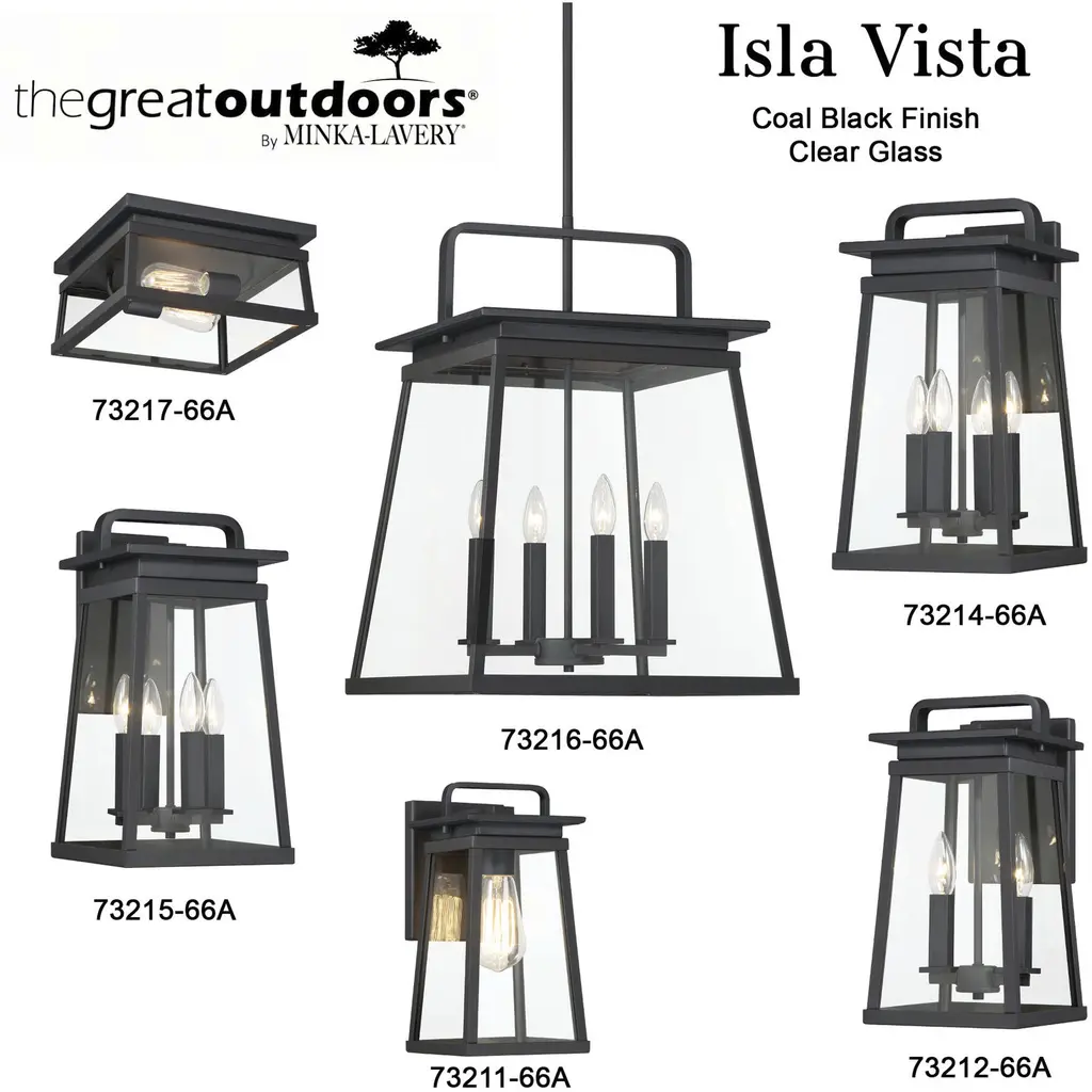 This 4 light Outdoor Wall Mount from the Great Outdoors Isla Vista collection by Minka-Lavery will enhance your home with a perfect mix of form and function. The features include a Coal finish applied by experts. This item qualifies for free shipping!