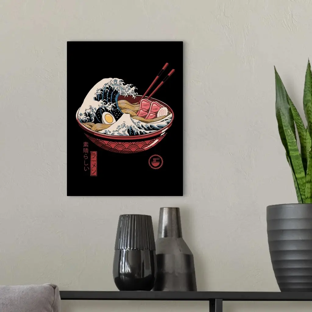 Great Ramen Wave wall art for home and office decor. Discover canvas art prints, photos, mural, big canvas art and framed wall art in GreatBigCanvas.com's varied collections.