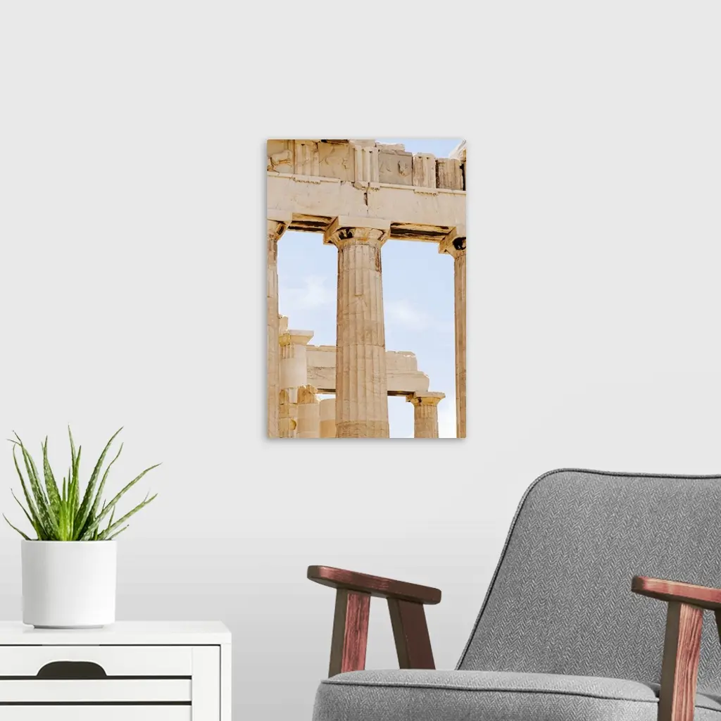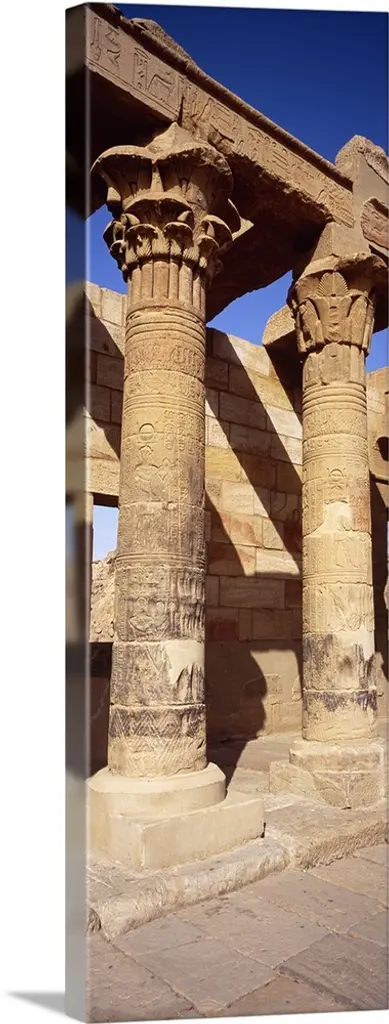 Vertical panoramic photograph of historic stone pillar ruins.