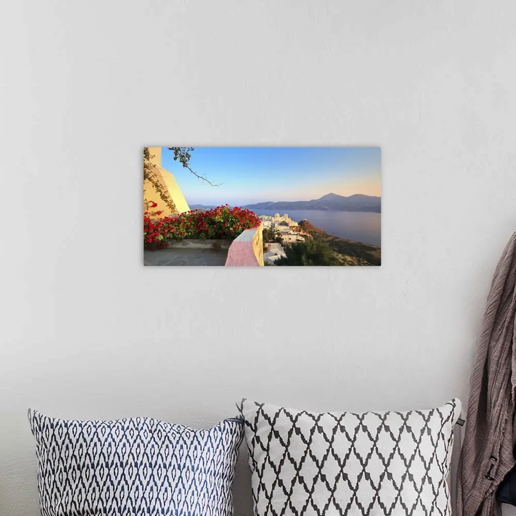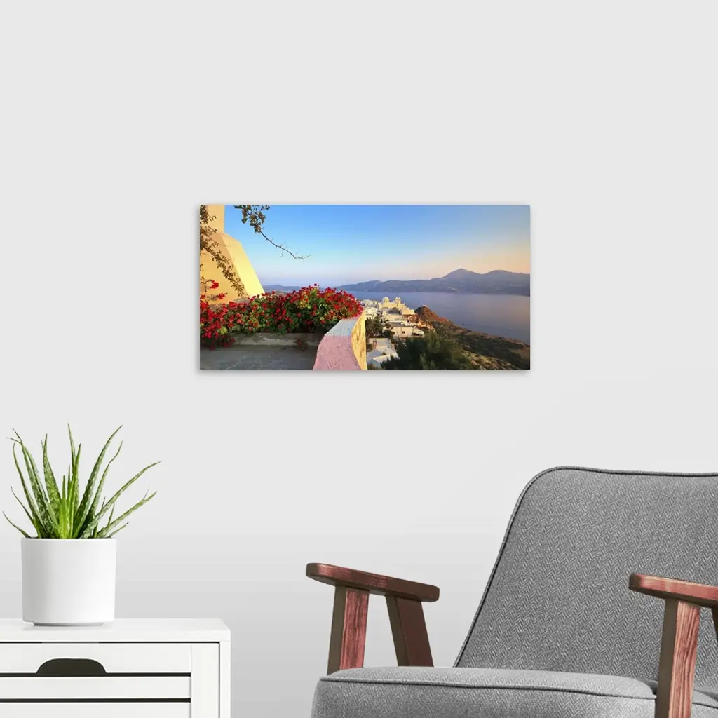Greece, Cyclades, Milos island, View of Plaka village from Kastro castle and church wall art for home and office decor. Discover canvas art prints, photos, mural, big canvas art and framed wall art in GreatBigCanvas.com's varied collections.