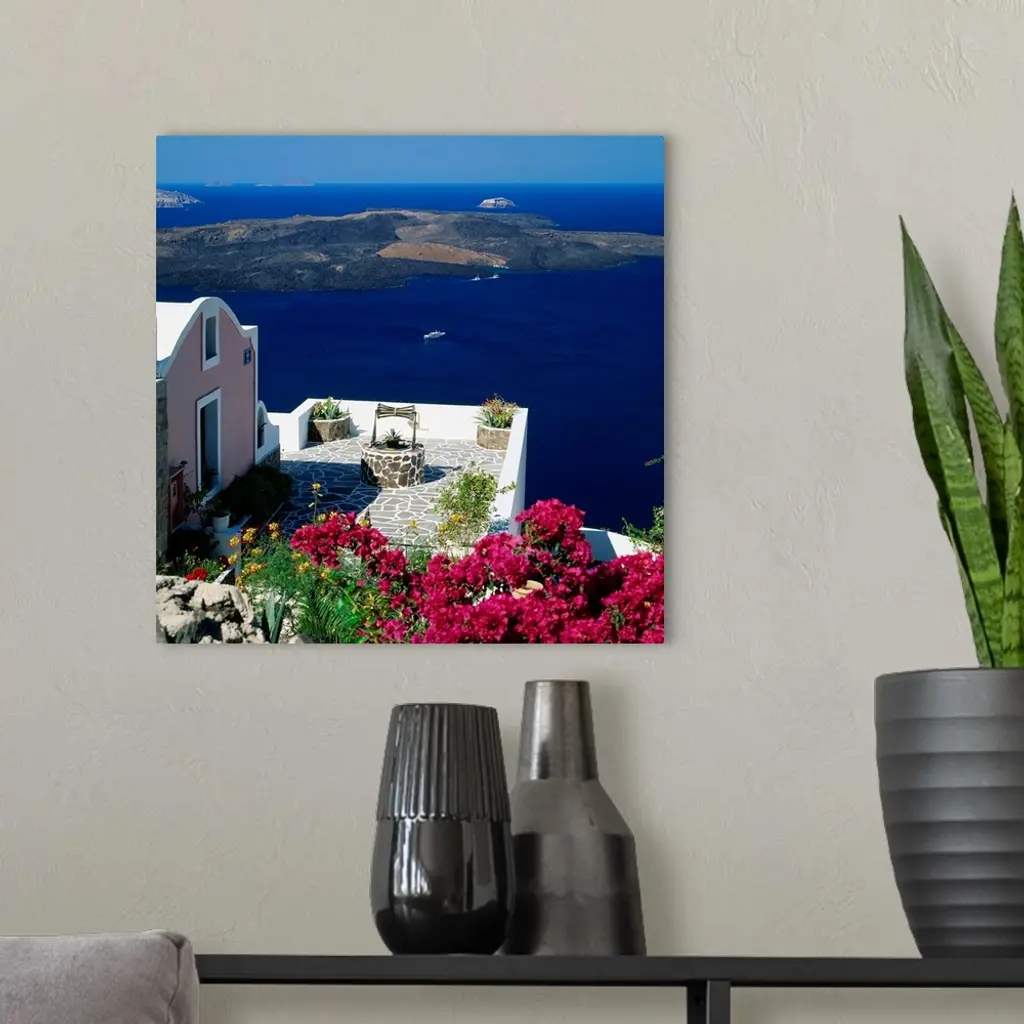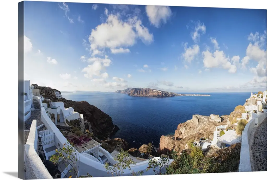 Greece, Cyclades, Santorini, View towards the crater wall art for home and office decor. Discover canvas art prints, photos, mural, big canvas art and framed wall art in GreatBigCanvas.com's varied collections.