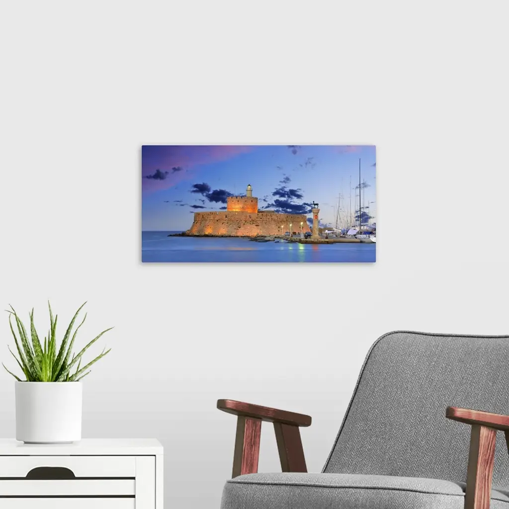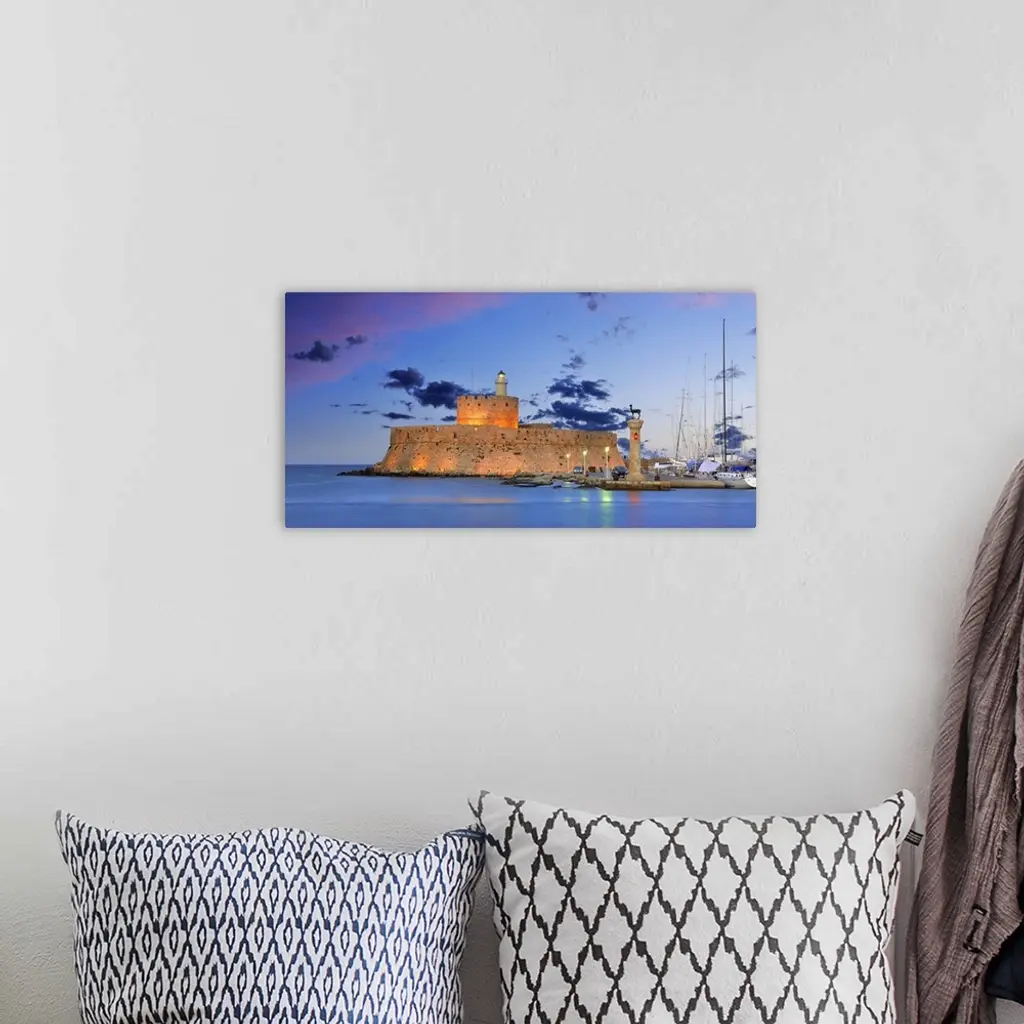 Greece, Rhodes island, Mandraki Port, Aghios Nikolaos Castle wall art for home and office decor. Discover canvas art prints, photos, mural, big canvas art and framed wall art in GreatBigCanvas.com's varied collections.