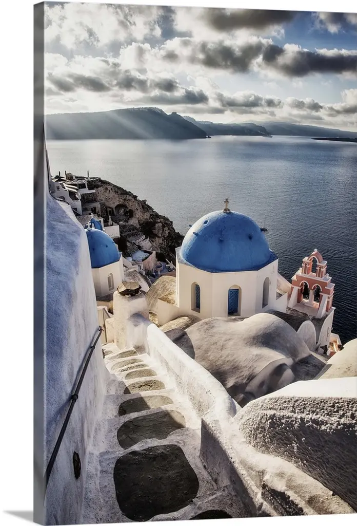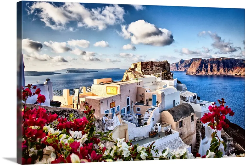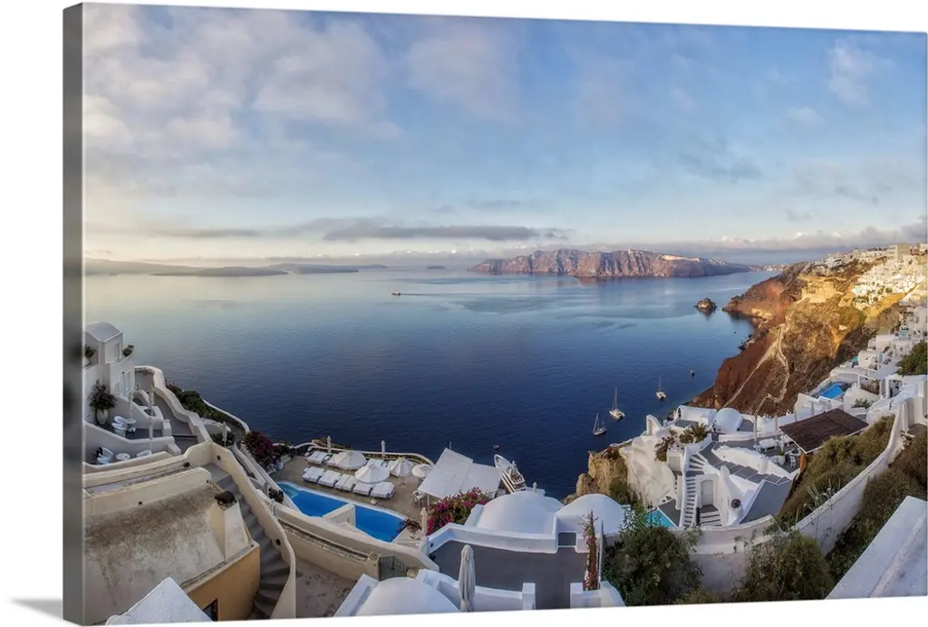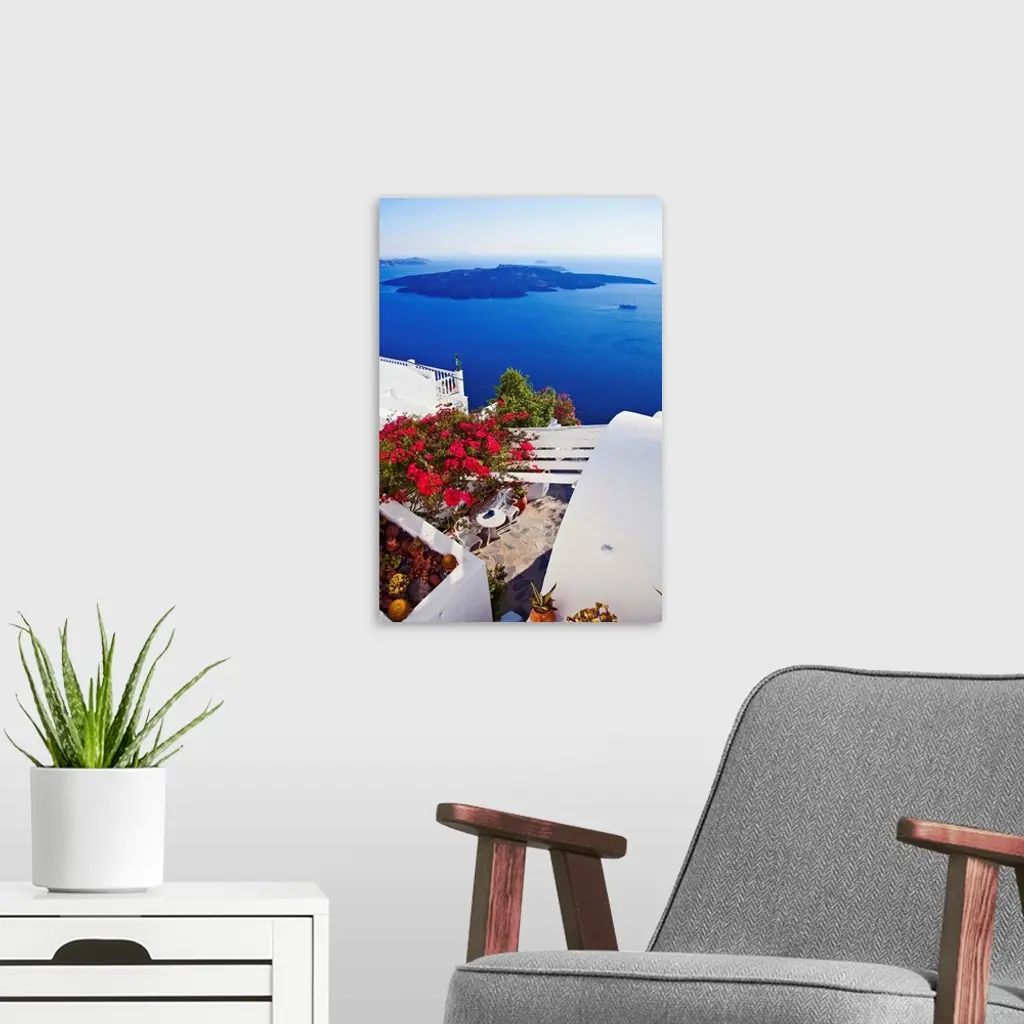 Greece, Santorini Island, View Towards The Caldera And Kameni Island