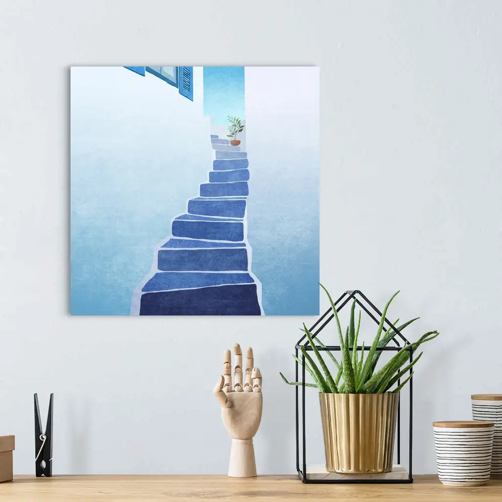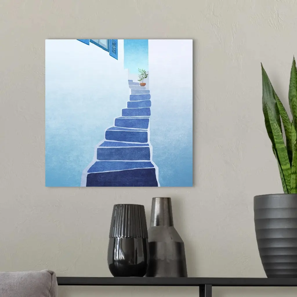 Greece Stairs wall art for home and office decor. Discover canvas art prints, photos, mural, big canvas art and framed wall art in GreatBigCanvas.com's varied collections.