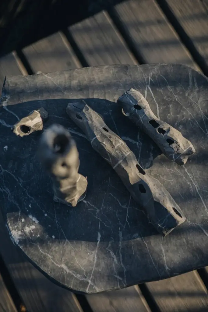Chaos set of 4 by Andres MonnierDimensions: Height: 10 - 20 cm, width: 5 - 8cmMaterials: Nero marquinaPiece inspired by Khaos, from Greek mythology. The personification of the void state preceding the creation of the universe. The sculpting process is directly linked to the relation that Khaos has with the emptyness. The organic orifices express the end of the materia, there's a physical representation of a void into the stone fragments. Chaos is a piece that in this version serves as an object, but it will have different upcoming variants. The figures are made with black marble from Puebla, Mexico.Designer's BiographyTreko Concrete is a Mexican studio based in Ensenada, that has as a purpose to create functional handcrafted furniture and sculptural pieces to tell stories with art and design. With the direction of AndresMonnier, Treko Concrete now creates handmade fire pits, art objects, and functional furniture with natural stone, mirror, concrete, wood, and metal. Treko works with different techniques and languages ofcreation to innovate new purposes in conventional furniture.