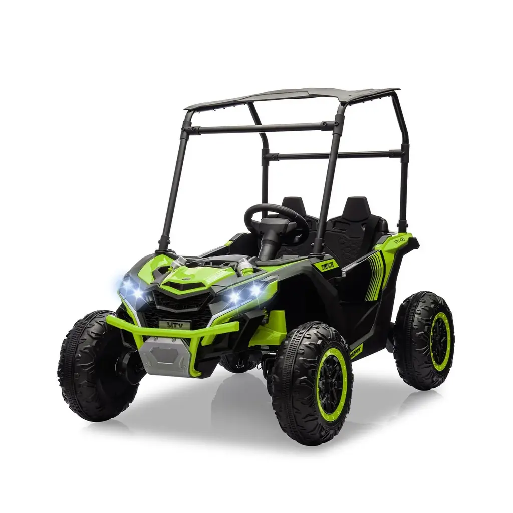 Explore fun and freedom: SHINY FURNITURE toy cars for kids!SHINY FURNITURE kids toy car is the ideal choice to inspire children's unlimited imagination and vitality. Whether running around the yard or exploring the park, our toy cars are designed to provide safety, comfort and endless fun.Product FeaturesDual Motor Power: This 2-seater ride-on car for kids features two 24-V motors to give little drivers the power to traverse across various terrains.Smooth Rides: Equipped with four spring suspension wheels, this kid's electric car ensures a smooth and comfortable ride, allowing your child to drive with confidence.Exciting Speed Options: With speeds ranging from 2.5-3.7 mph, this 24V ride provides thrilling yet safe entertainment.Interactive Features: Our kid's ride-on car makes playtime realistic with built-in music, a horn, and bright LED lights to keep your toddler's head in the game.Kids Electric Car Info: Dimensions: 46.9" L x 31.1" W x 28" H. Weight Capacity: 110 lbs. Assembly required.Product InformationMain Color:GreenMain Material:PlasticConclusionSHINY FURNITURE kids toy car is not only a toy, but also a companion and inspiration for children on the road of growth. Choose SHINY FURNITURE to keep your child alive and happy on every ride!