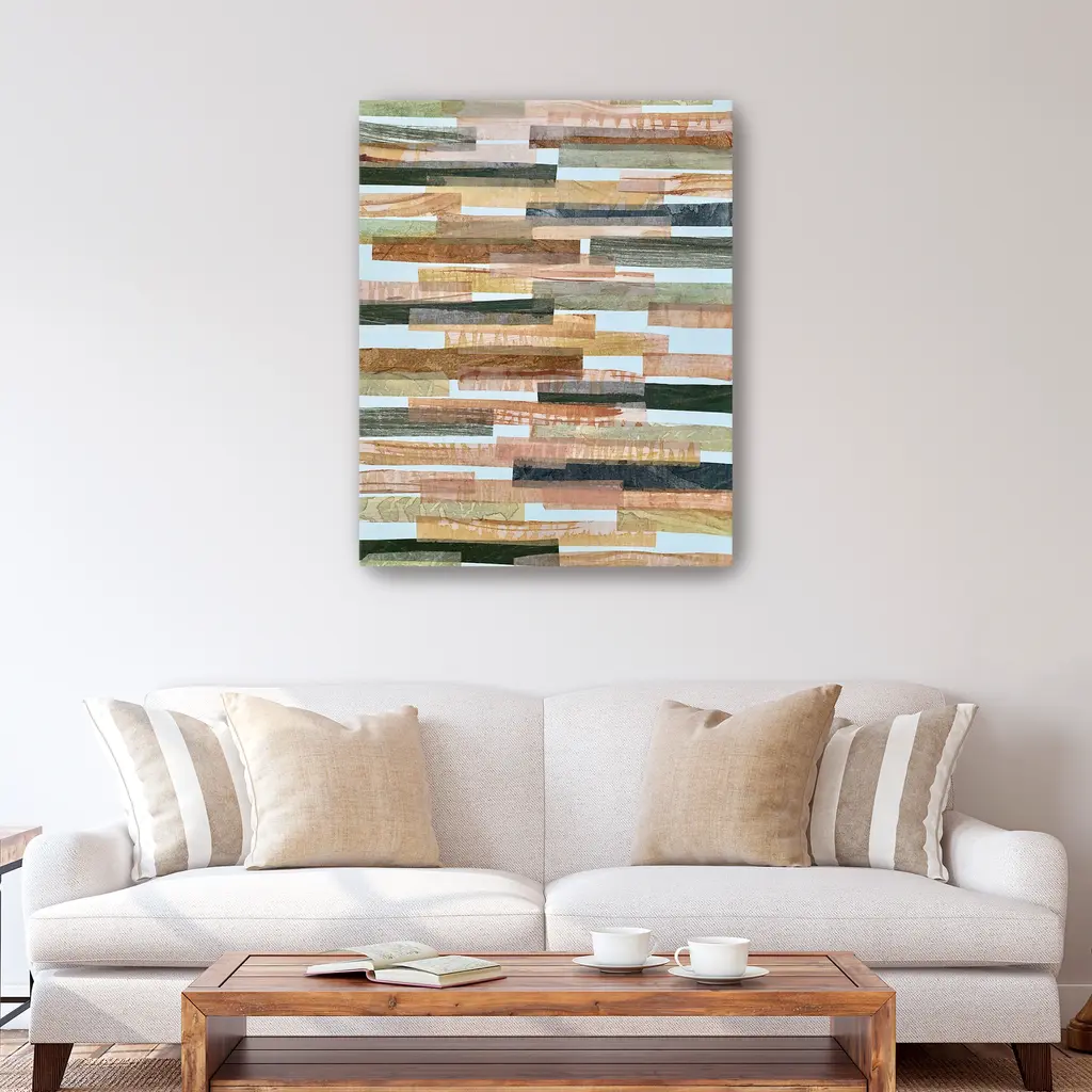 Transform your living space with "Green And Brown Horizontal" canvas art print by Haley Knighten in neutral earthy tones. The harmonious blend of soft, natural colors adds a touch of elegance to any room. Its subtle hues and organic shapes create a calming atmosphere, making it ideal for both contemporary and classic interiors. Available in black frame, dark walnut frame, oak frame, or as a wrapped canvas. Our Gallery Wrap Canvas Prints are proudly assembled with high quality materials in California, USA. Each piece is printed on a thick, archival grade canvas using Giclee technology. It is then hand-stretched by our experienced artisans over solid wood bars, which will not warp over time. The final product is a piece personally crafted for you to confidently display on your wall. Care and Assembly: Ensure that the location of your piece has little to no exposure to heat, sunlight, and moisture. Wipe clean, only if needed. Each piece includes a sawtooth hanger to hang on your wall vertically.