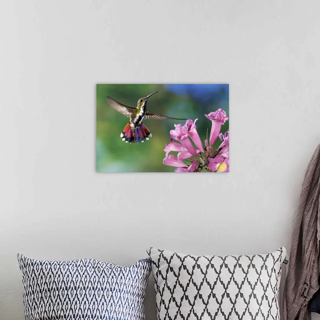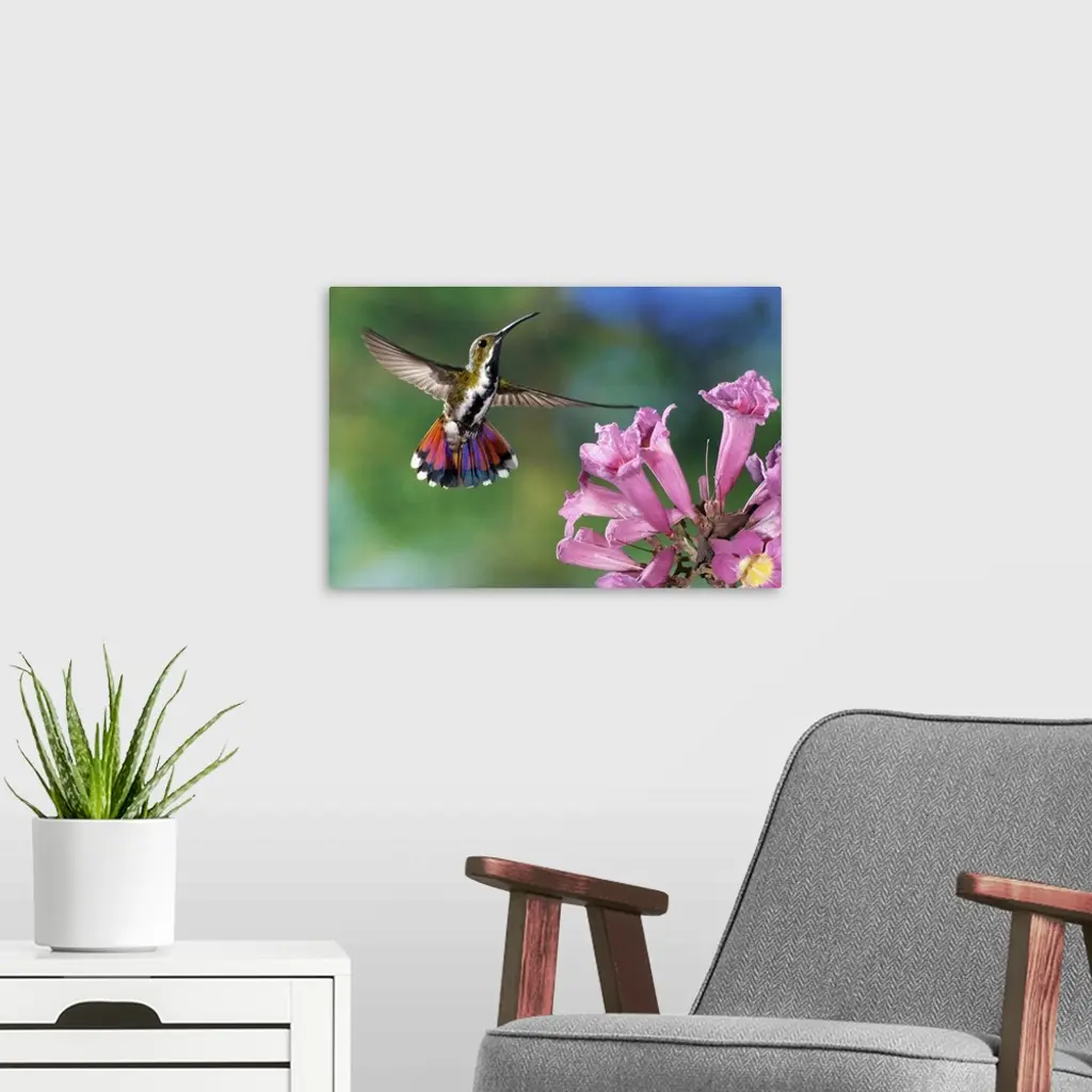 Green-Breasted Mango Hummingbird With Flowers Of Puiva Tree, Costa Rica