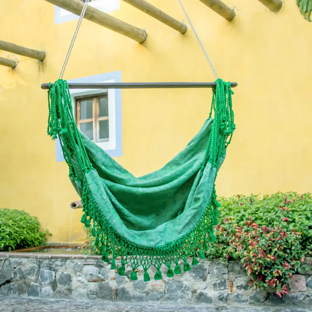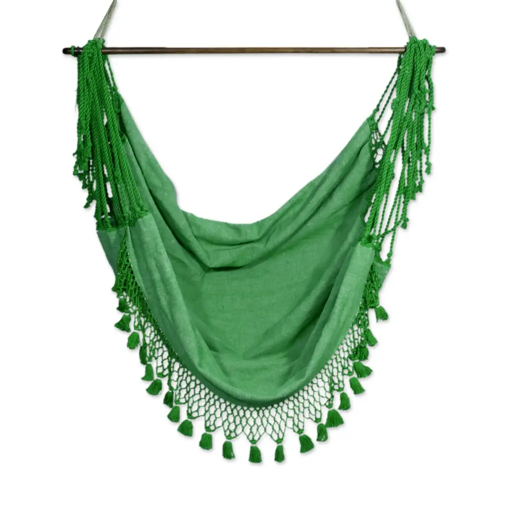 Green Hand Crafted Cotton Hammock Swing From Guatemala- Take Me To The Forest